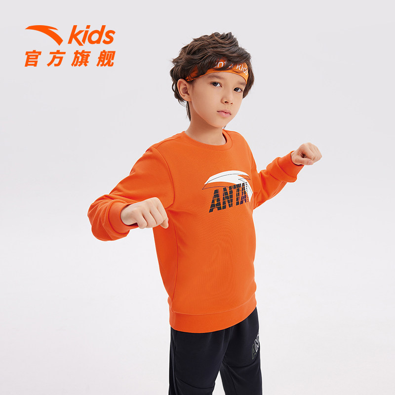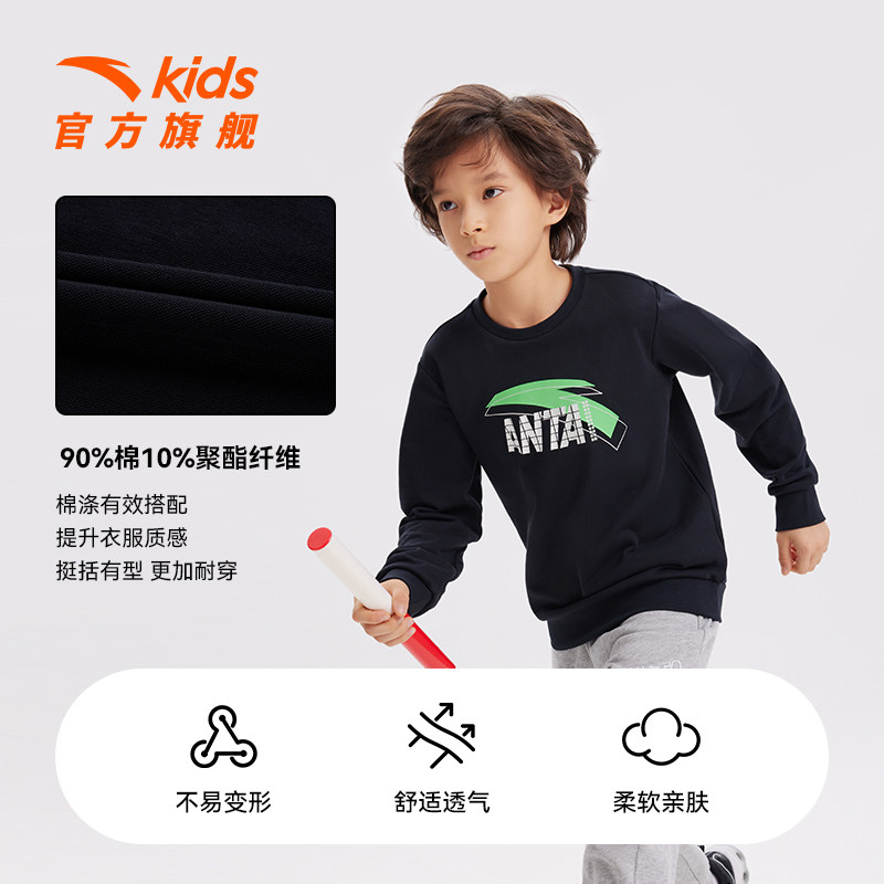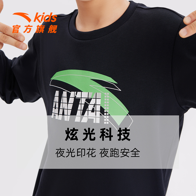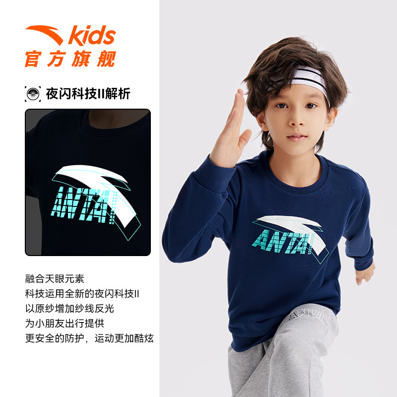 天猫anta安踏童装旗舰店,安踏儿童装男童卫衣加绒秋冬2022,简约百搭 夜光LOGO 夜跑安全