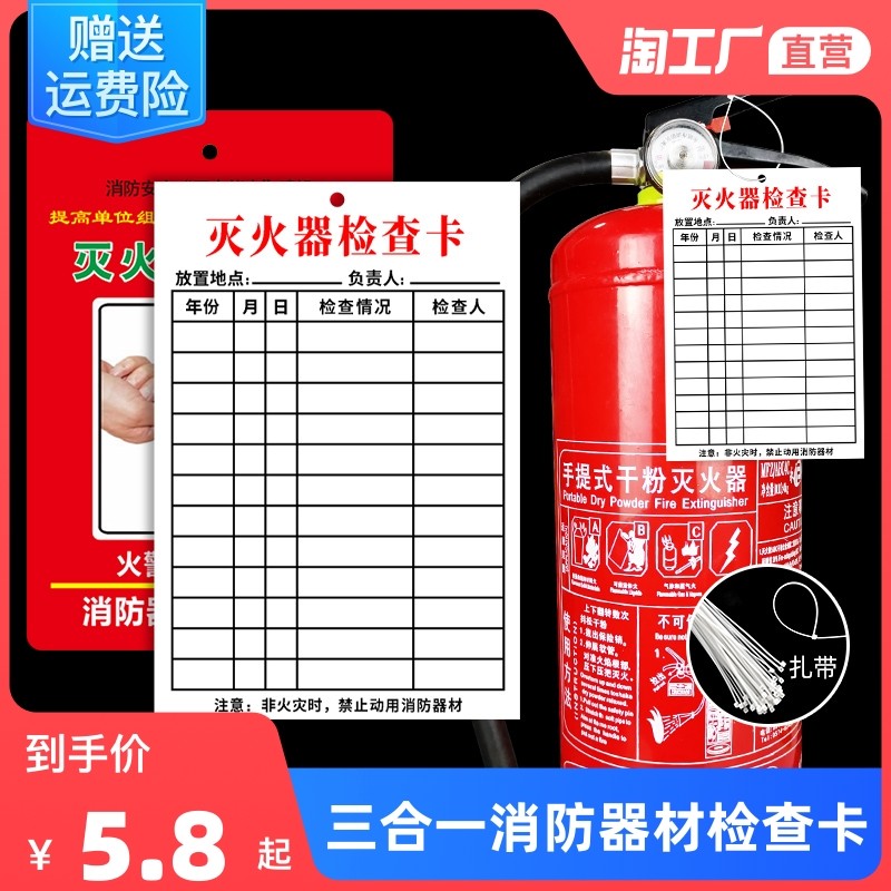 天猫天天特卖工厂店,灭火器检查卡记录卡消防器材检查登记卡消火栓卡套每月定期巡查卡消防箱月检卡年检标签消防栓点检卡标识标牌