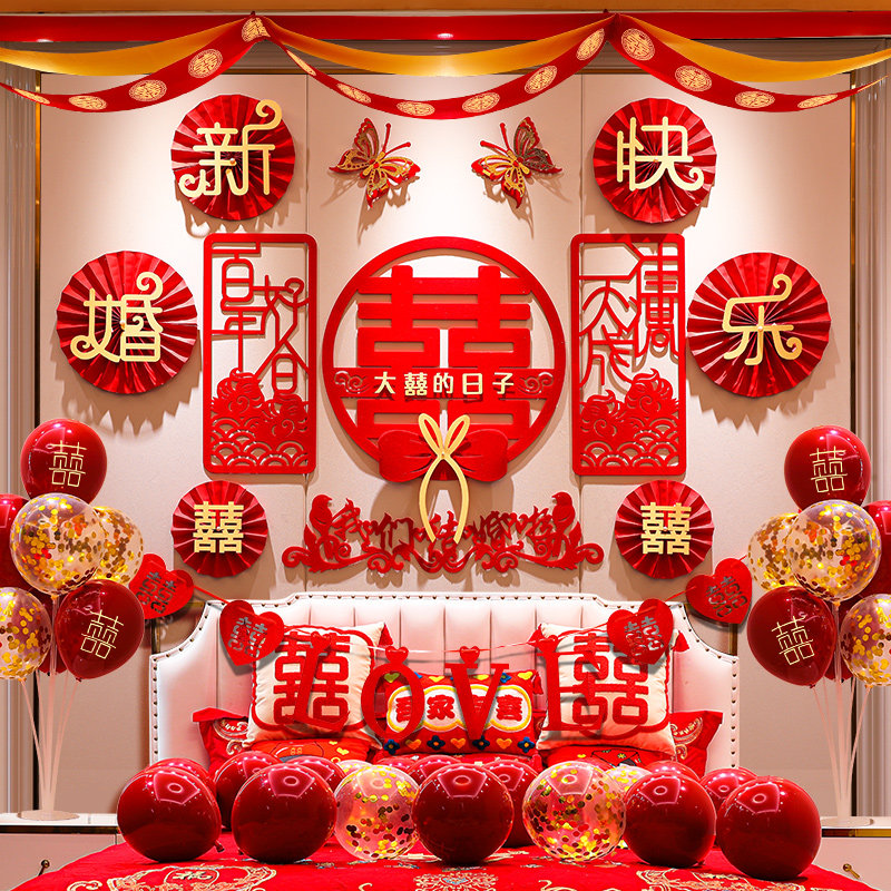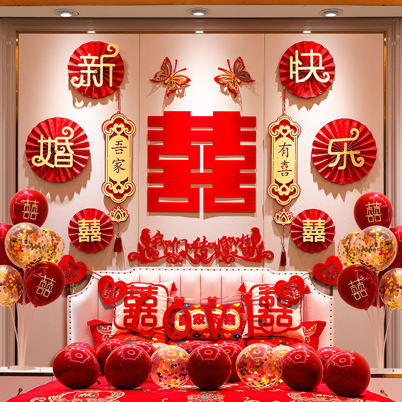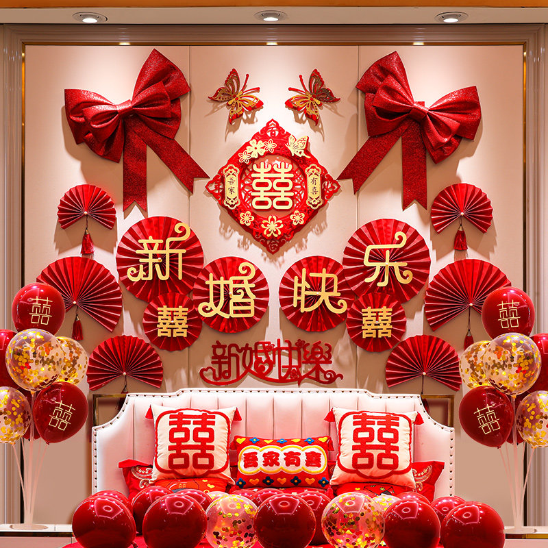 天猫爵质家居旗舰店,婚房布置套装男方简单大方卧室拉花,金葱膜蝴蝶结
