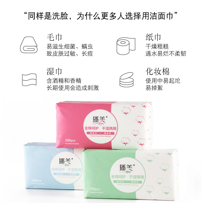 天猫播美旗舰店,10包抽取式一次性加厚纯棉洗脸巾,大包100抽