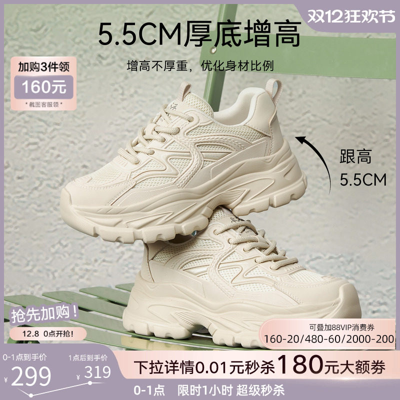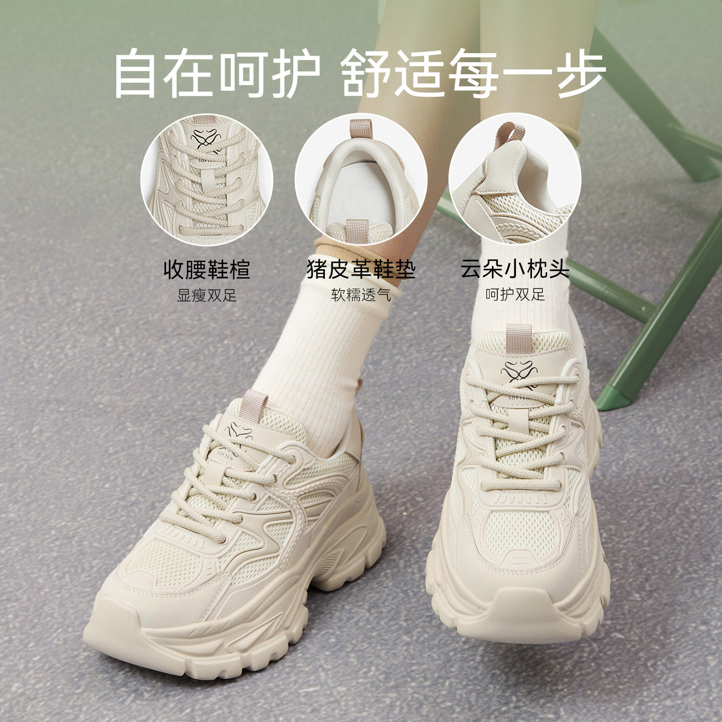 天猫百思图官方旗舰店,百思图2025秋季新款网面透气老爹鞋纯色厚底女运动休闲鞋D3558CM5,时尚潮流简约舒适