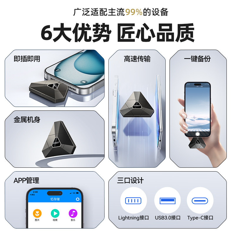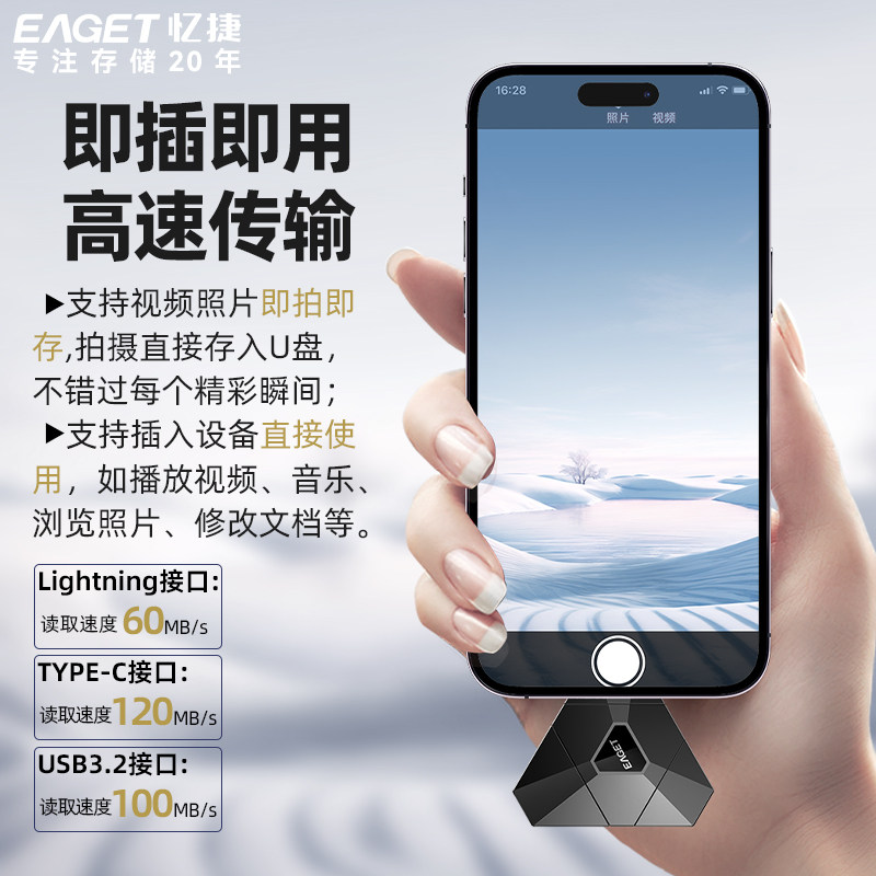 天猫忆捷和创专卖店,忆捷苹果手机u盘MFi认证两用优盘,苹果手机U盘 手机备份扩容 安全数据加密