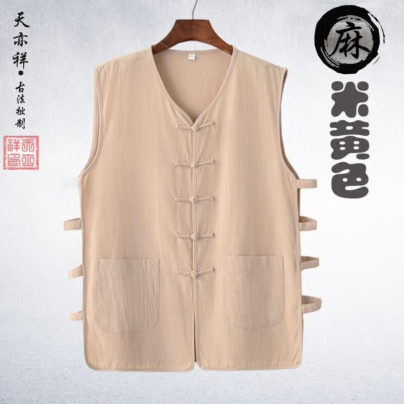 淘宝开尔男装店,夏薄款亚棉麻背心中国风唐装男式马甲夹汉褂盘扣老头汗衫北京坎肩