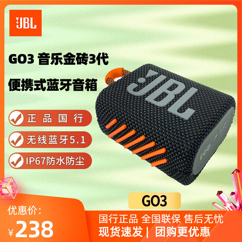 淘宝富氢影音科技,JBL GO3音响音乐金砖无线音箱防水防尘超低音炮便携户外迷你蓝牙
