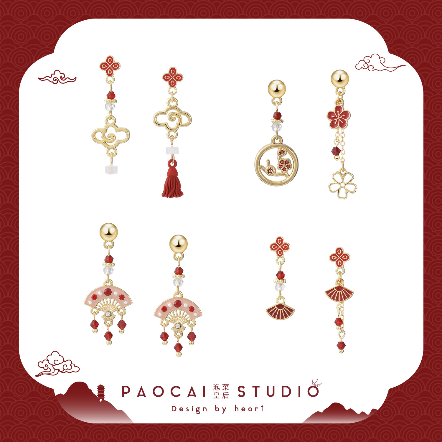 淘宝〖泡菜皇后〗独立设计师品牌店,泡菜皇后新年红色扇子耳钉买4免1