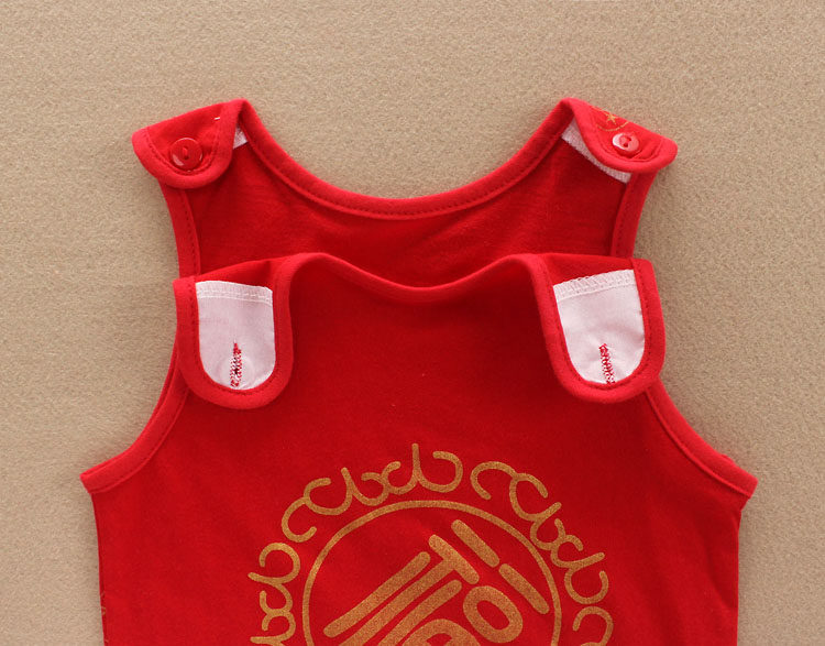 夏季婴乐岛宝宝大红色百天纯棉背心