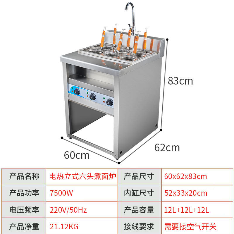 立式六头电热煮面炉商用煮面机烫粉炉定制款304水缸煮粉炉冒菜炉