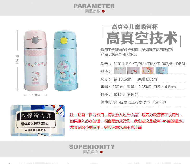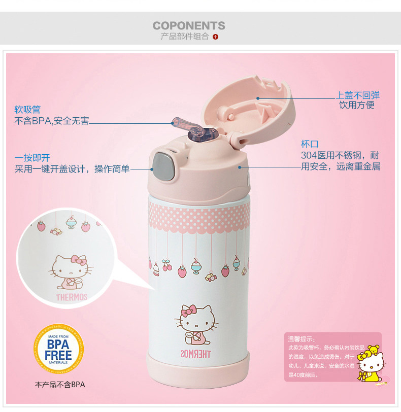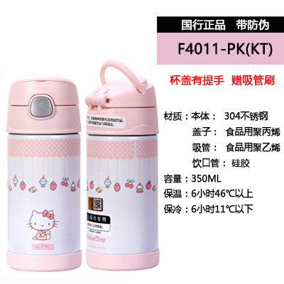 膳魔师儿童保温吸管杯hellokitty魔膳师卡通保温杯宝宝水杯F-4011