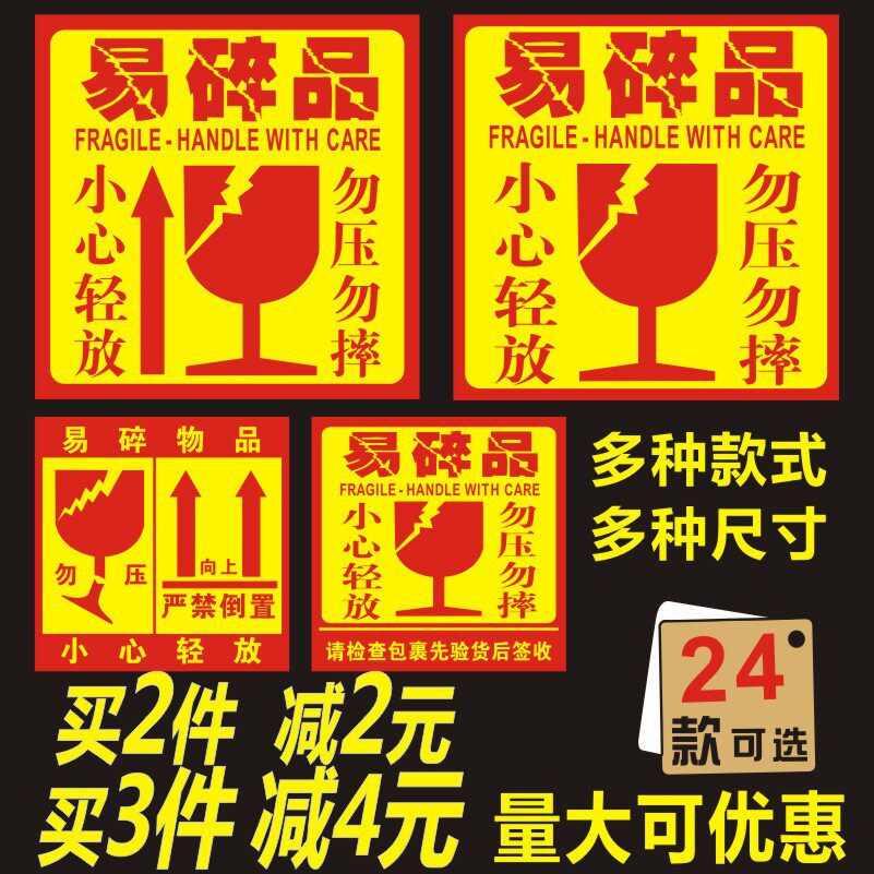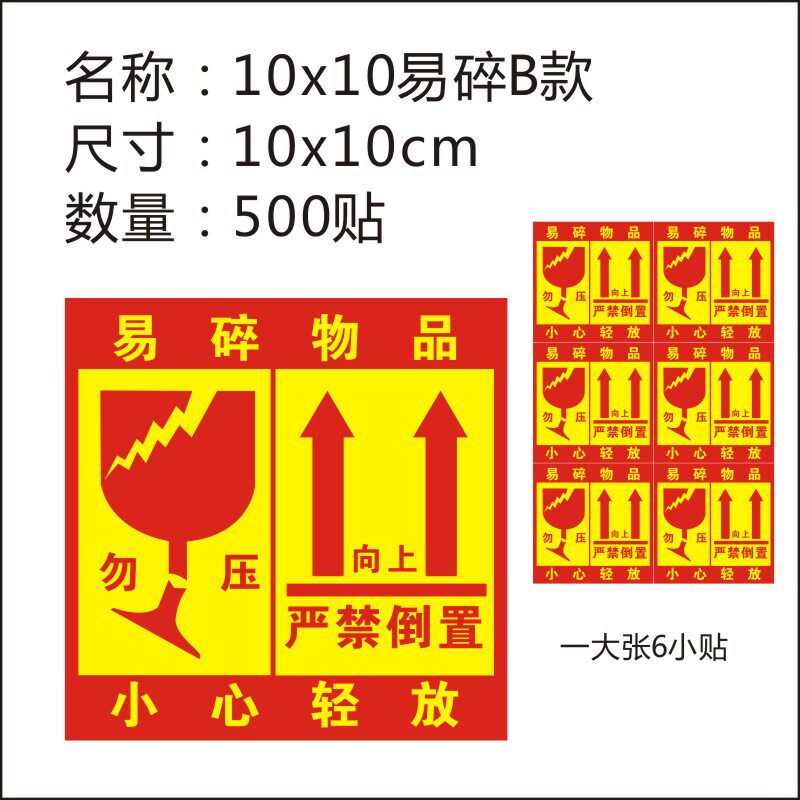 易碎标贴警示贴小心轻放勿压贴纸