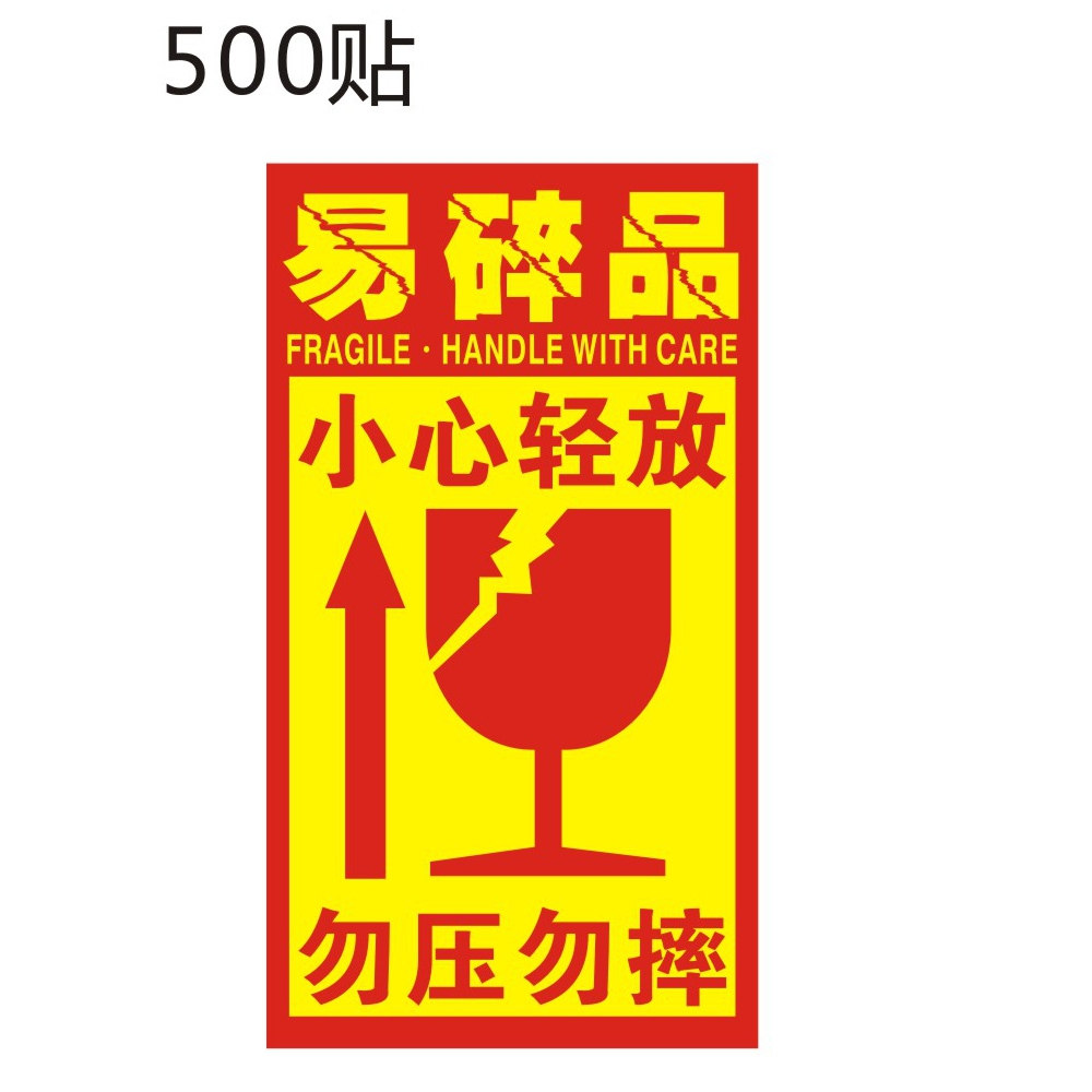 易碎标签 易碎品小心轻放贴纸 勿压勿摔贴纸定制货物警示贴不干胶