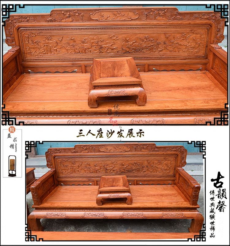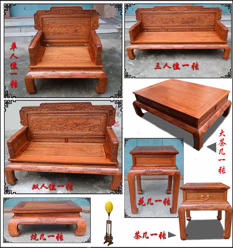 淘宝优尚名品红木家具,红木沙发 缅甸花梨木雕花实木沙发茶几123客厅成套红木家具沙发