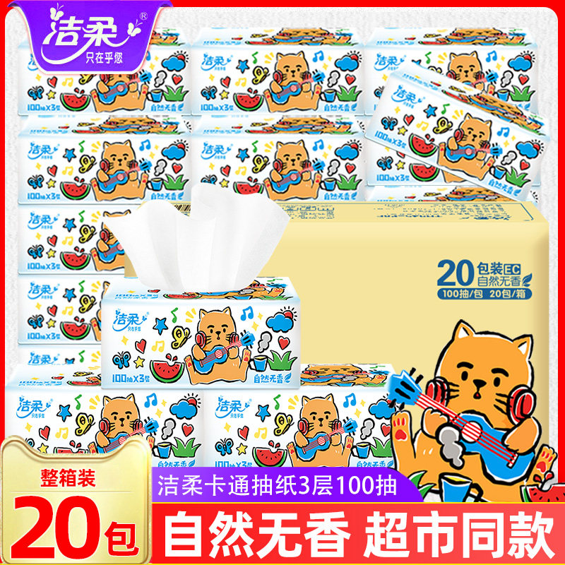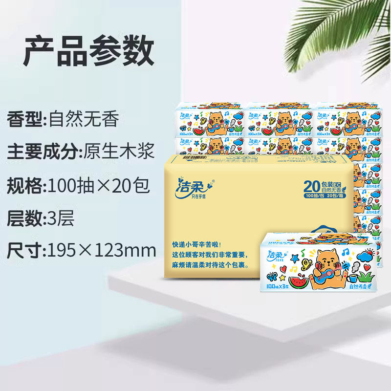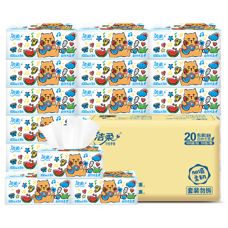 天猫洁柔享茂专卖店,洁柔纸巾抽纸整箱20包婴儿餐巾纸,3层加厚,可湿水面纸