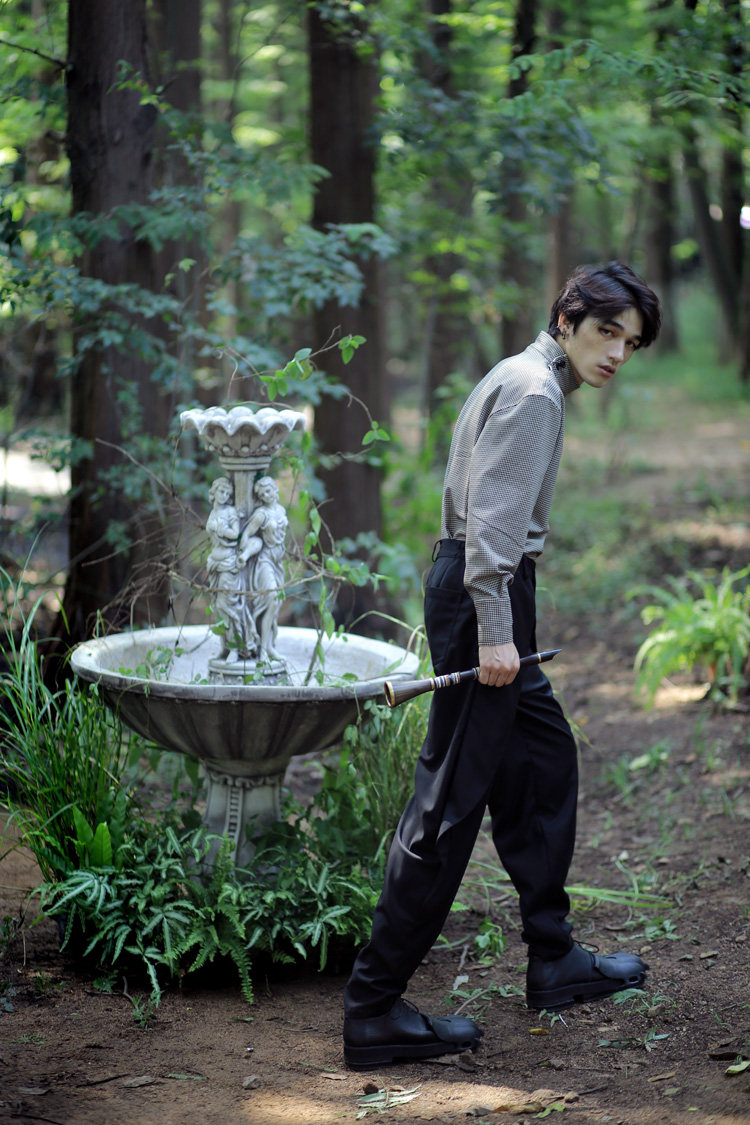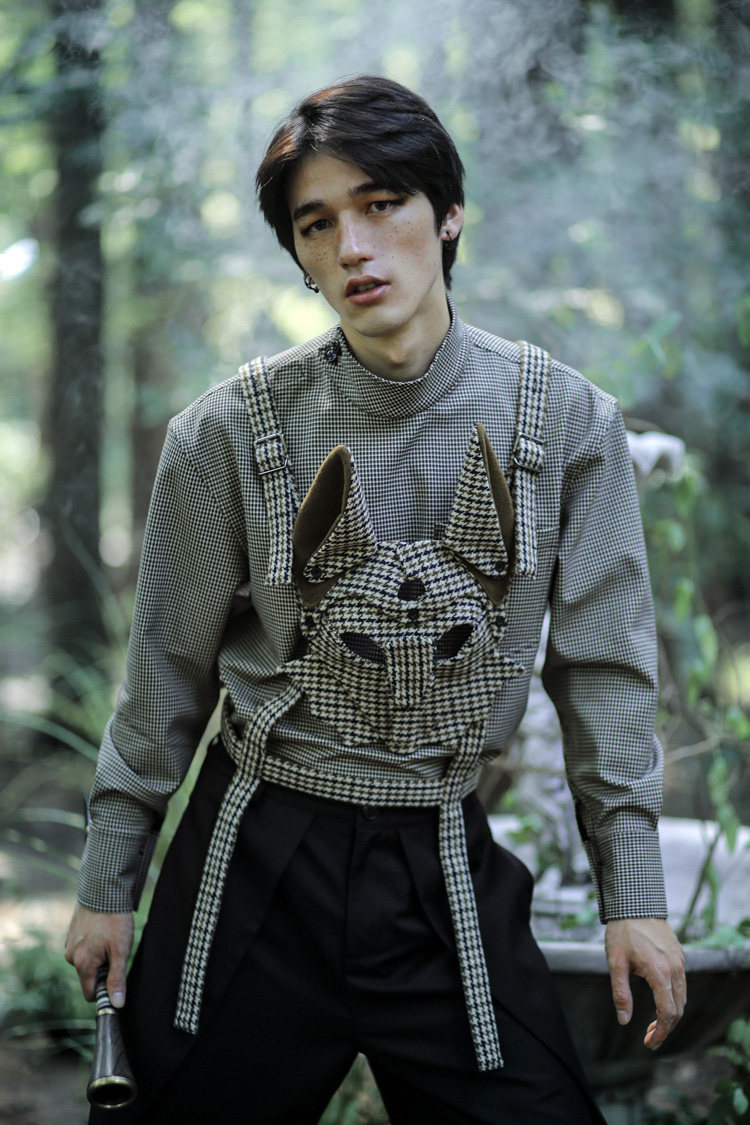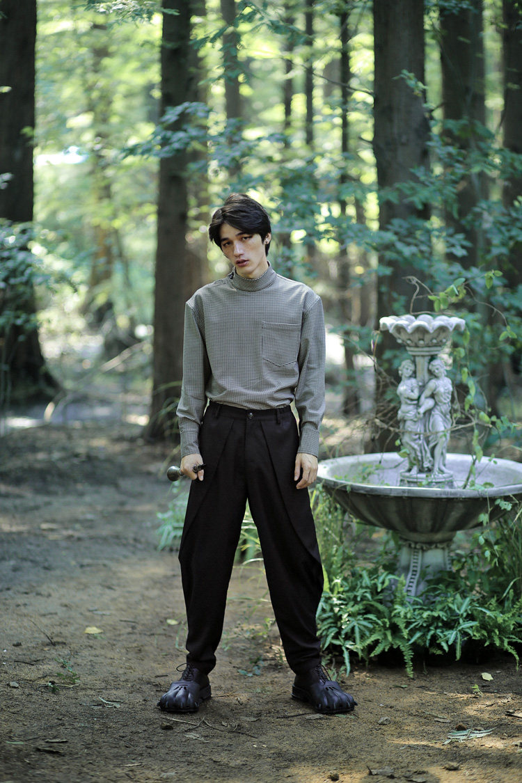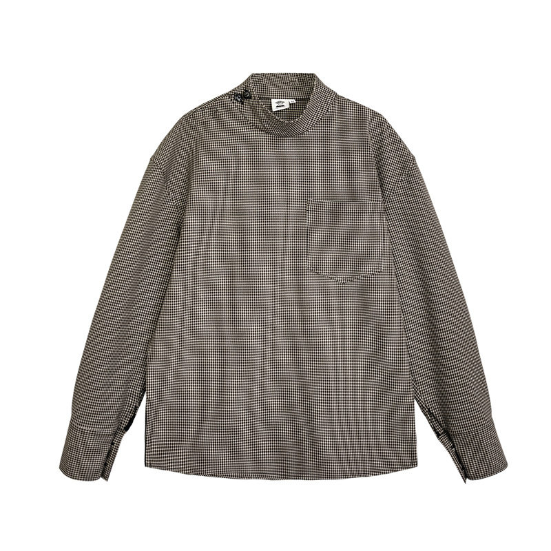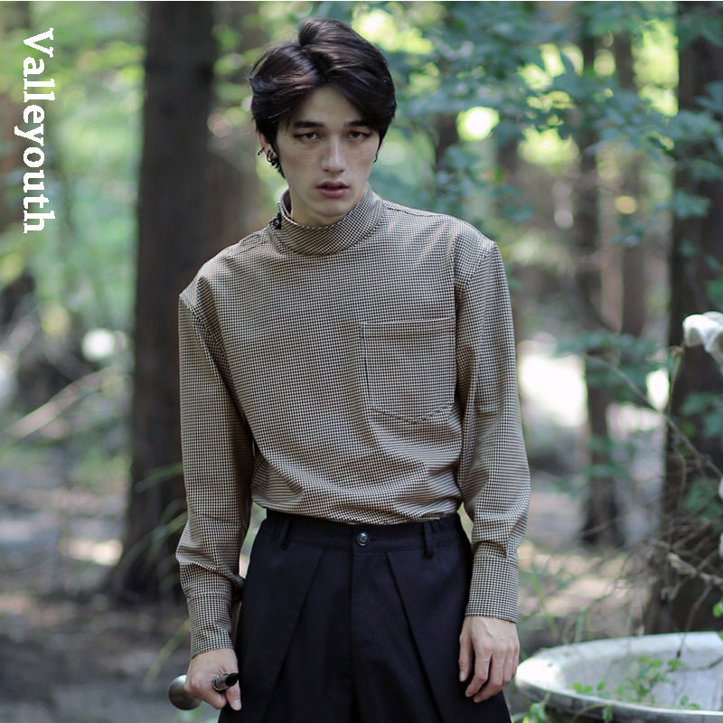 棕狸 复古千鸟格小高领套头时髦打底卫衣 山谷少年原创设计师男装