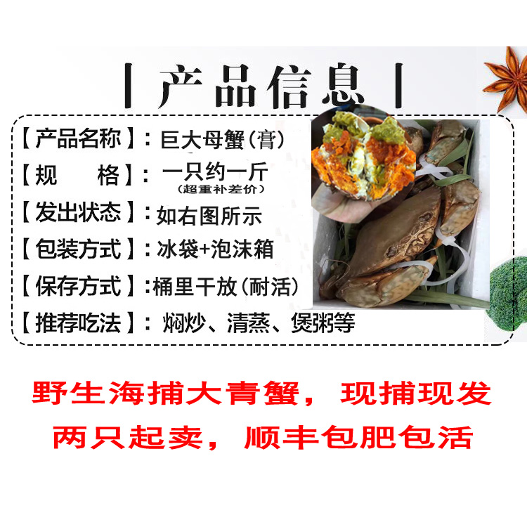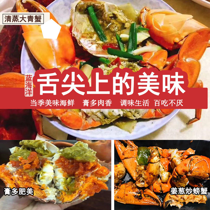 淘宝蓝海洋纯野生大青蟹直销顺丰发货,黄油膏蟹超大青蟹鲜活特大红鲟羔蟹蝤蛑螃蟹糕蟹母蟹1只1斤野生蟹