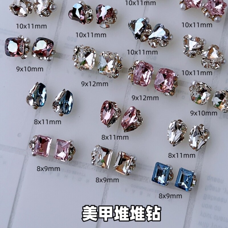 美甲奢华堆钻肥方斧头歪心长方爱心精致钻石指甲超闪堆堆水钻饰品