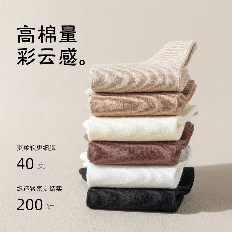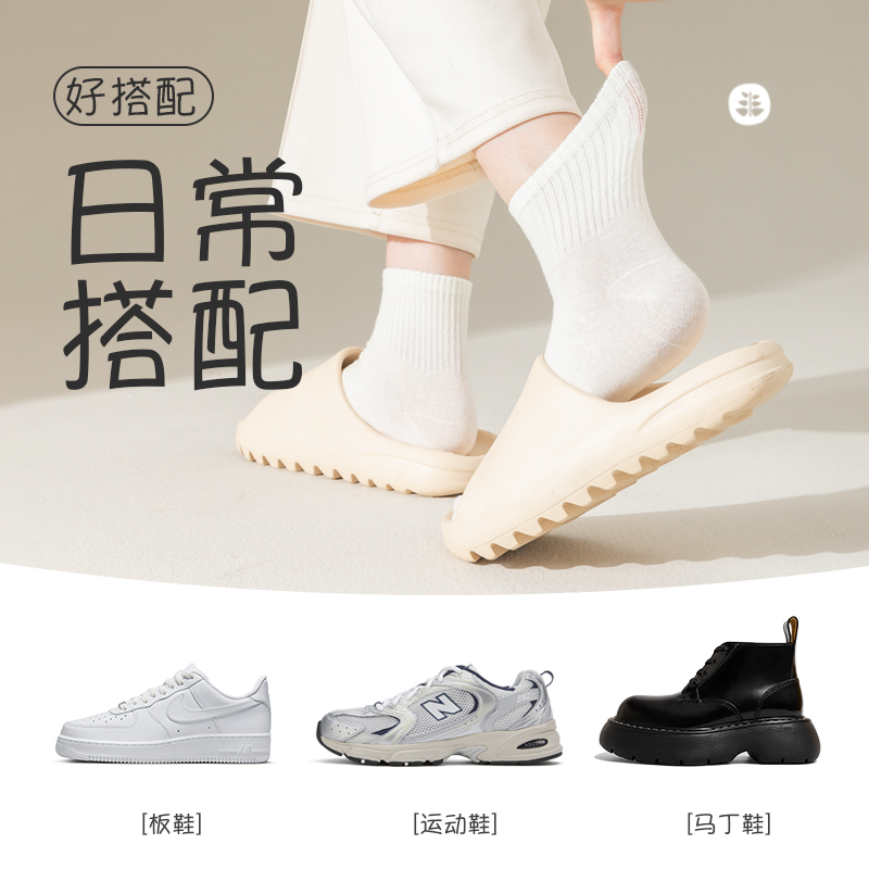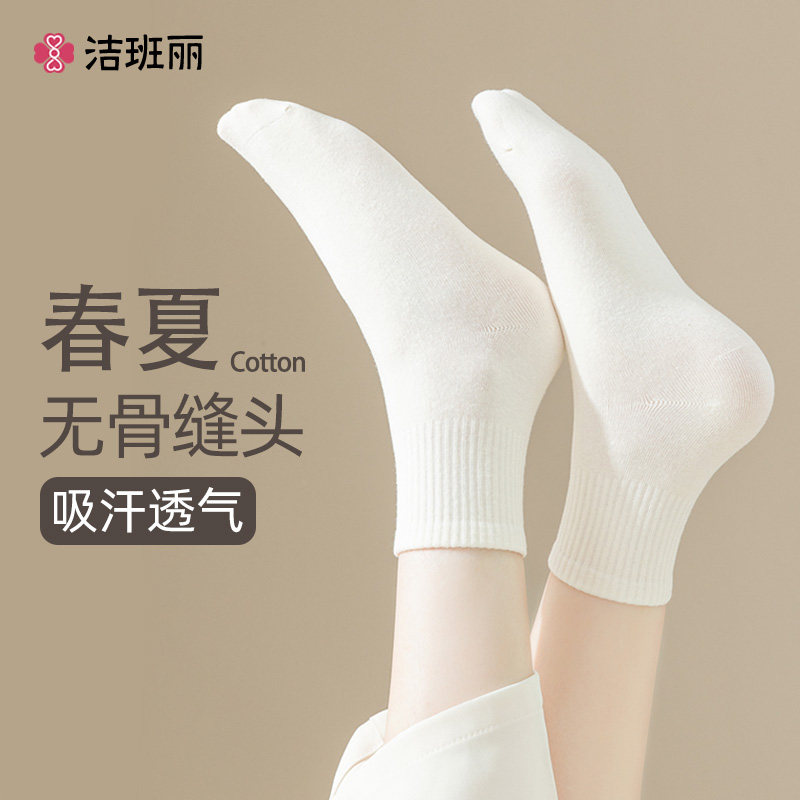 天猫洁班丽旗舰店,春秋女袜无骨吸汗防臭白色中筒袜,纯棉吸汗防臭秋冬无骨中筒袜