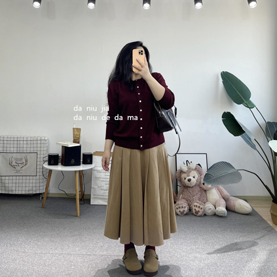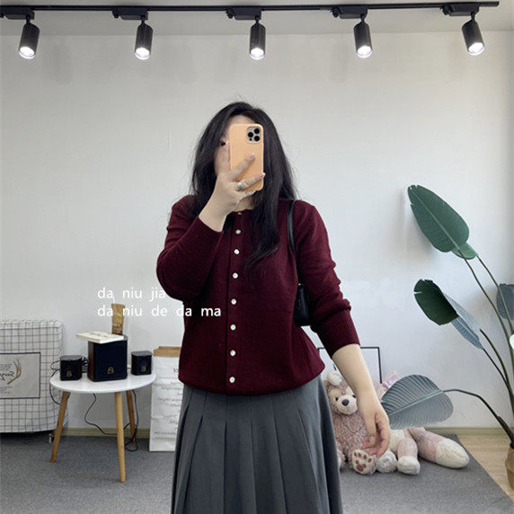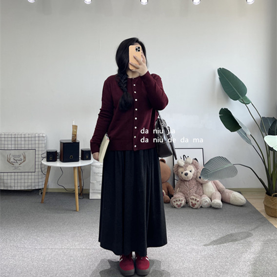 古早安哥拉红复古圆领扣子针织开衫大牛家大码女装胖MM显瘦百搭