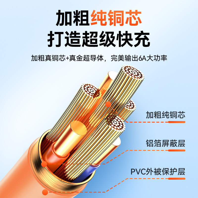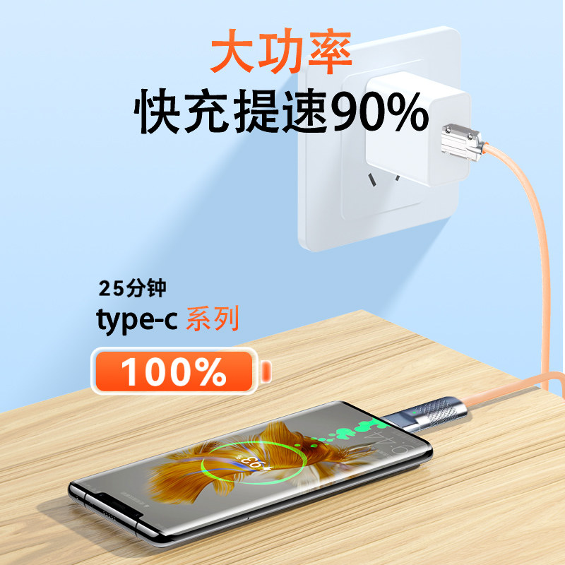天猫小石妹旗舰店,适用华为荣耀小米正品数据线6A加粗极客线oppo手机金属tp充电线vivo安卓超级闪充66瓦锌合金120W