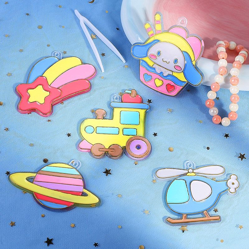天猫天天特卖工厂店,创意diy免烤水晶胶画材料包儿童手工制作挂件涂鸦画 自制填色挂饰