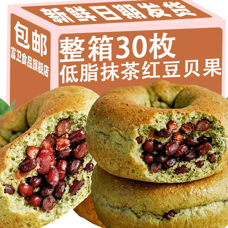 天猫富卫食品旗舰店,抹茶红豆味全麦贝果夹心面包无糖精营养代餐休闲零食整箱早餐面包