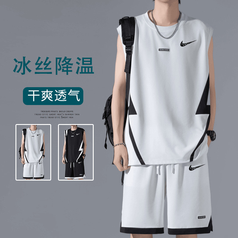 淘宝品质男装 折扣专区,耐克顿休闲运动套装男士2024新款夏季冰丝速干背心短裤篮球服一套