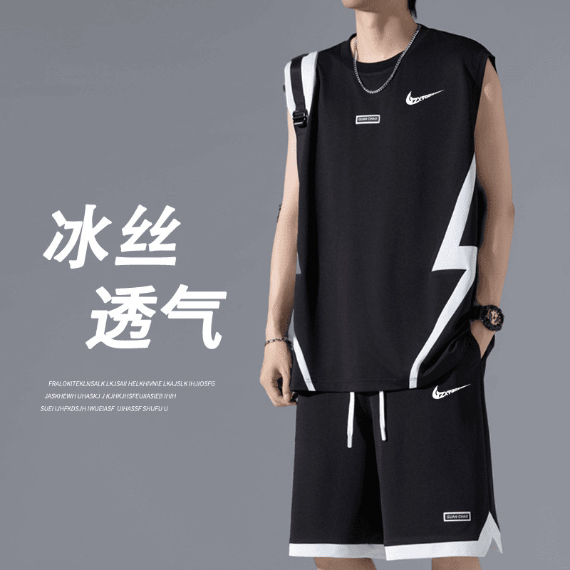 耐克顿休闲运动套装男士2024新款夏季冰丝速干背心短裤篮球服一套