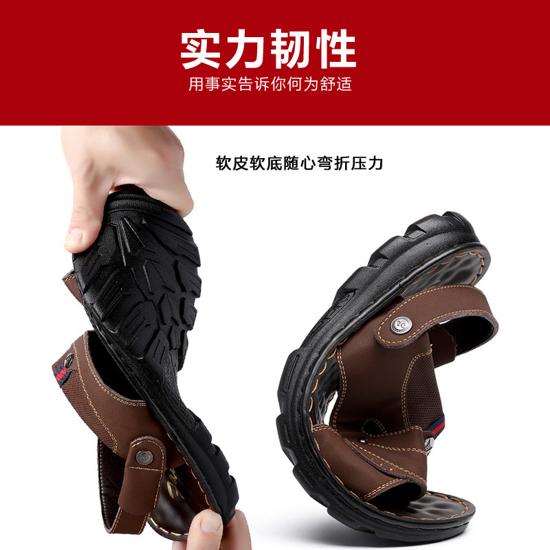 红蜻蜓男士凉鞋真皮2024夏季新款软底防滑沙滩鞋休闲开车外穿两用