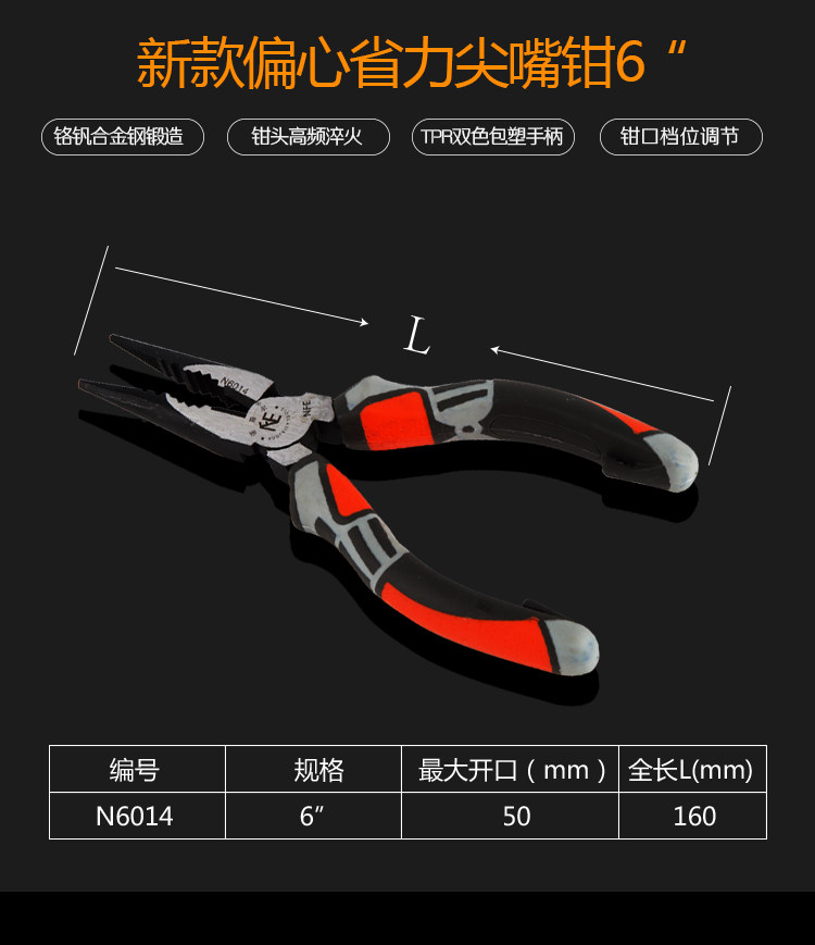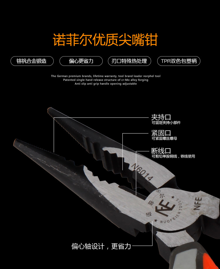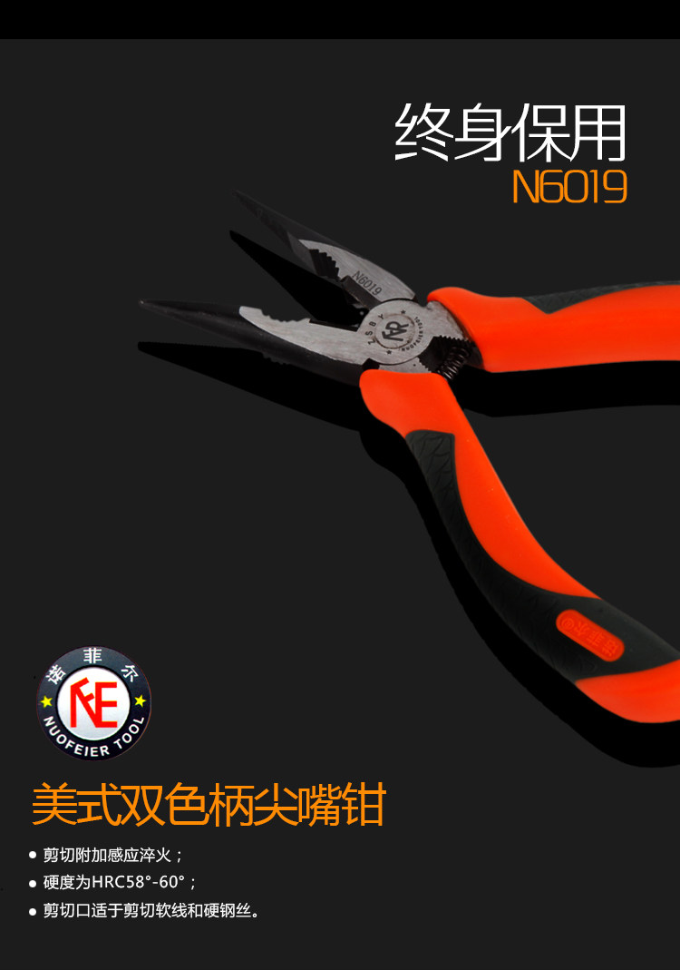 淘宝267百货商家,诺菲尔工具尖嘴钳 五金工具防滑手柄6寸尖头钳子 尖咀钳子针嘴钳