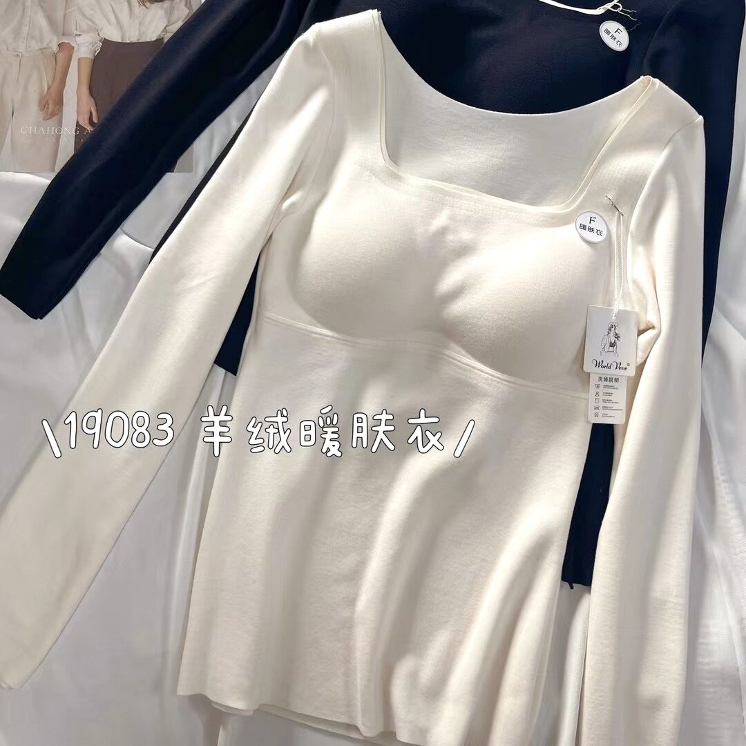 淘宝美丽天成优品店,羊绒暖肤衣19083秋冬薄绒长袖T恤女带胸垫显瘦内搭打底保暖上衣潮