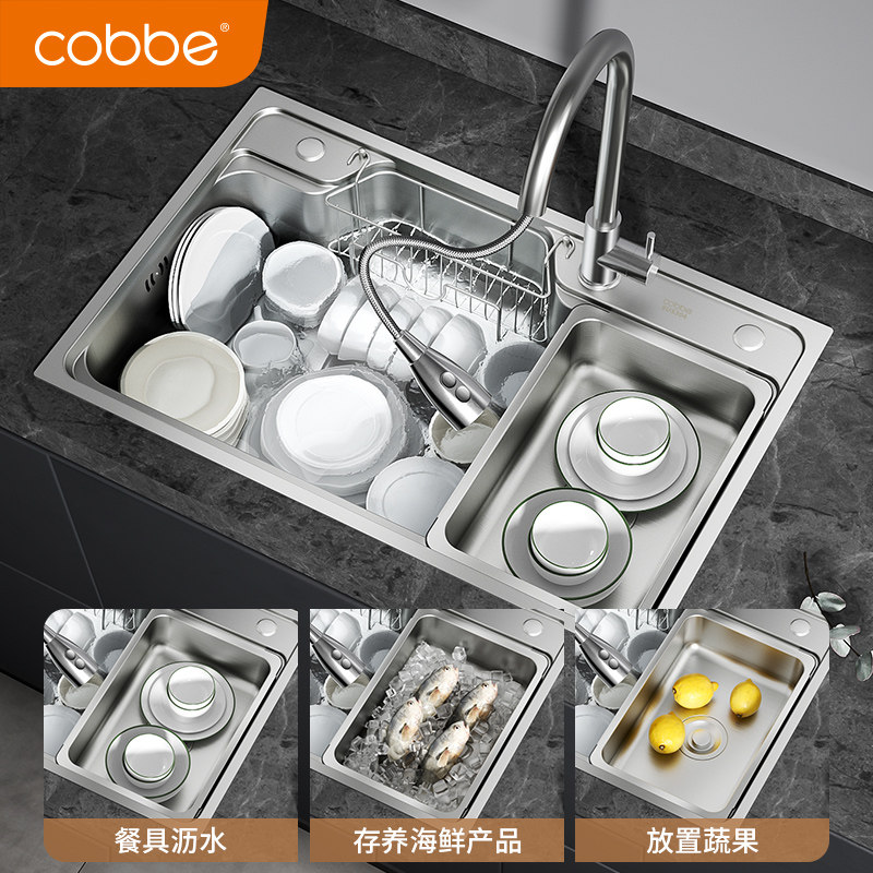 【日式大单槽】卡贝 厨房家用洗菜盆304不锈钢水槽洗碗槽洗碗池