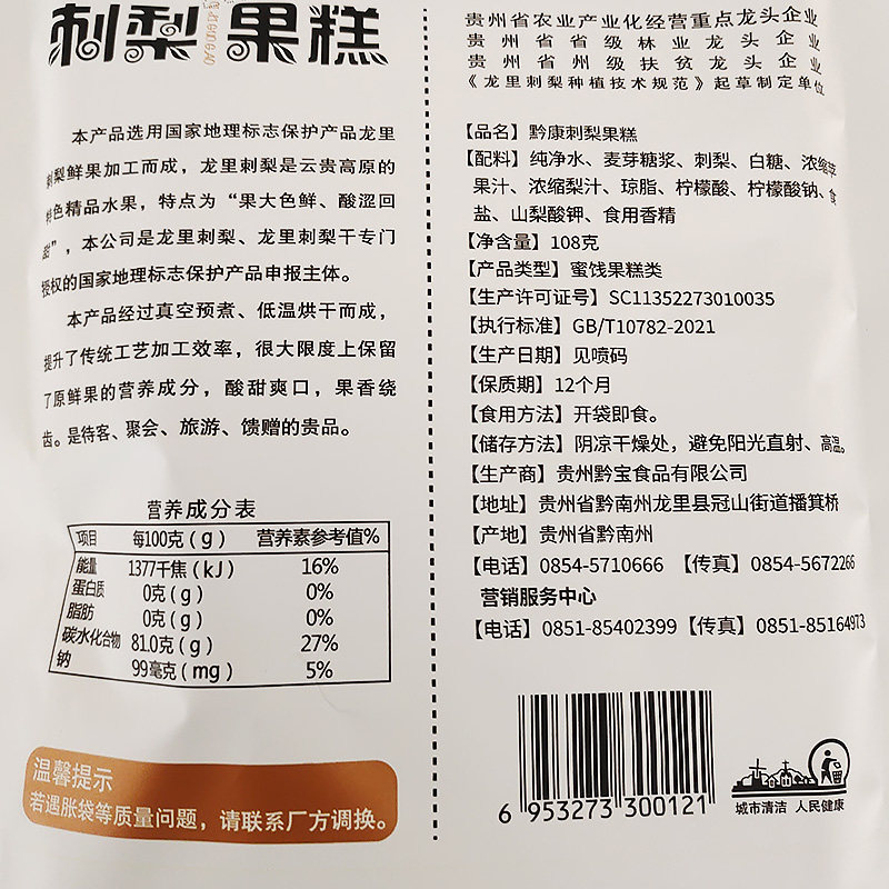 贵州特产黔康108g贵阳零食刺梨果糕