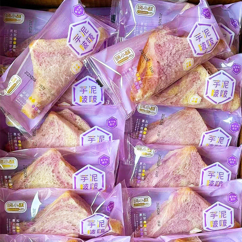 天猫信忆食品专营店,嗨小酥芋泥啵啵面包三明治香芋味早餐整箱糕点夹心代餐休闲零食品