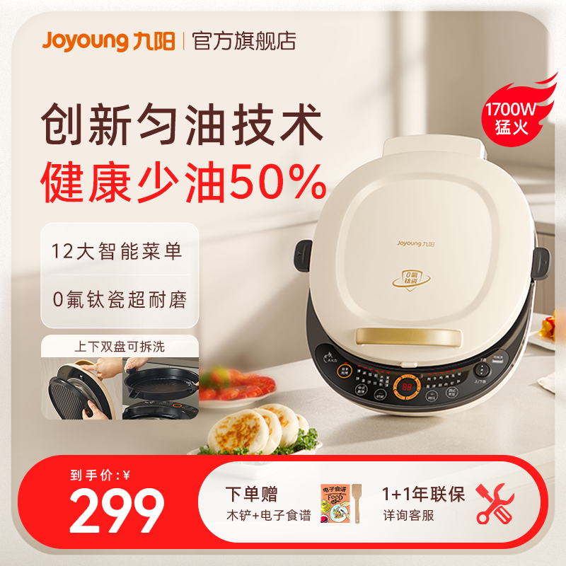 天猫九阳官方旗舰店,九阳0氟钛瓷电饼铛双可拆超耐磨,0氟超耐磨 少油50% 健康烹饪