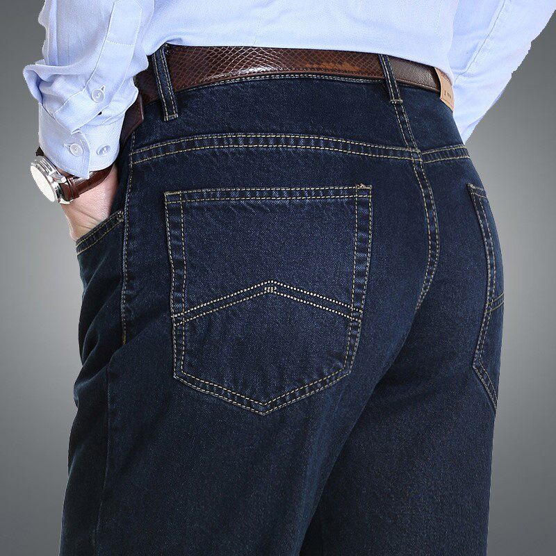 苹果牛仔裤男正品秋季经典纯棉中年高腰直筒宽松中老年爸爸装春秋