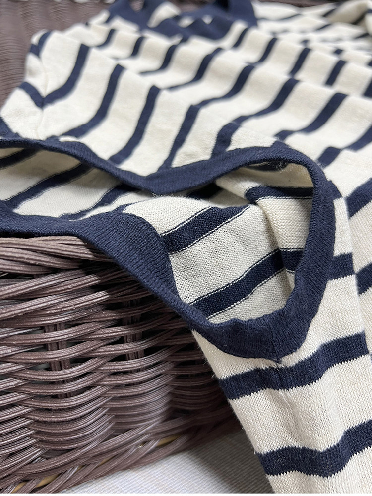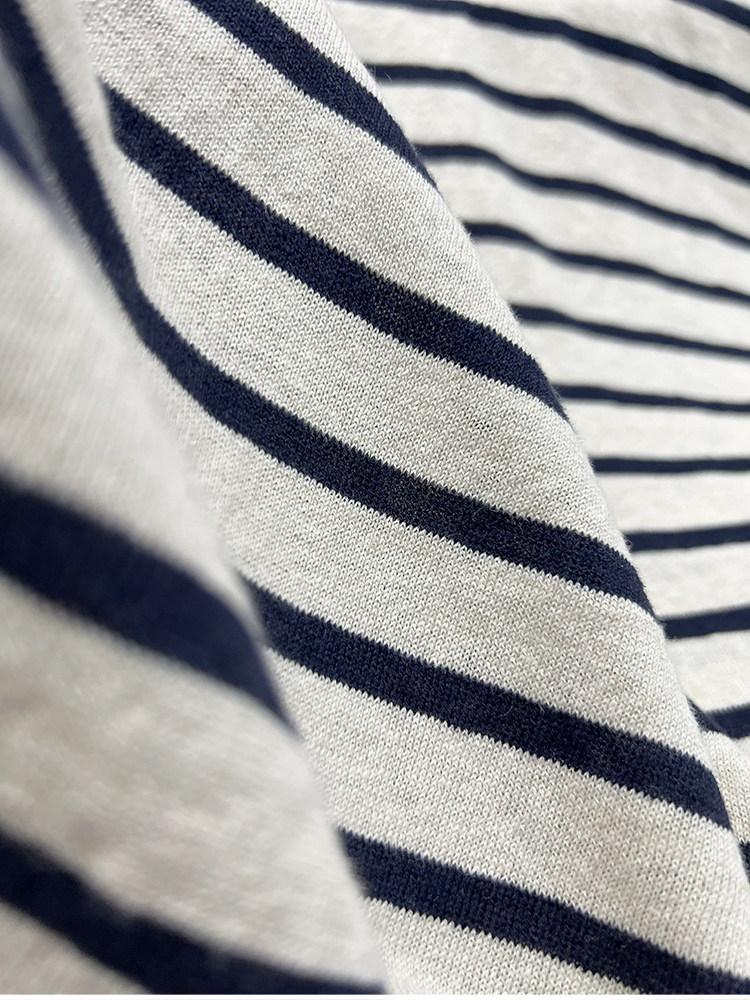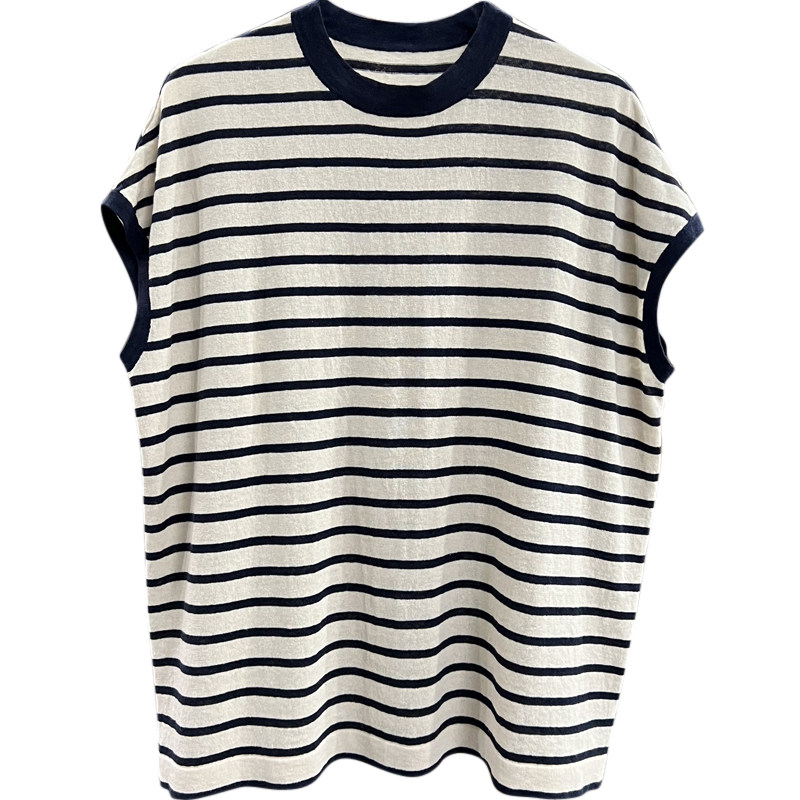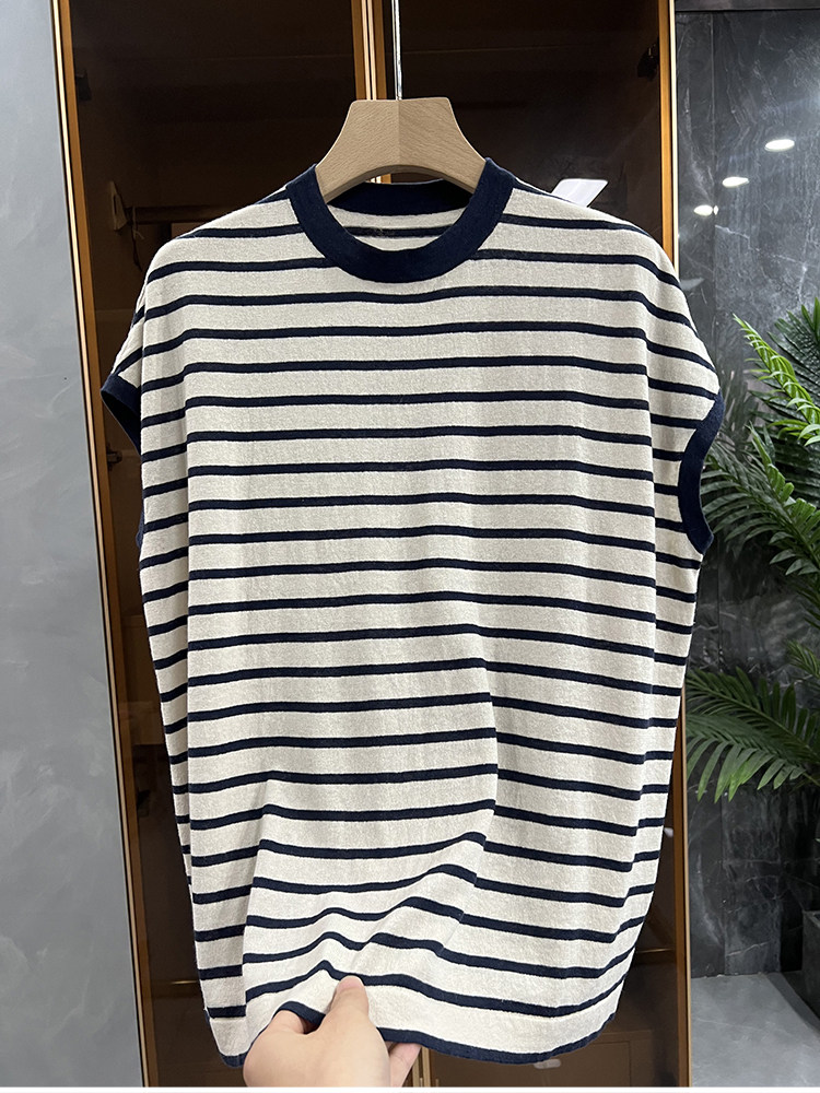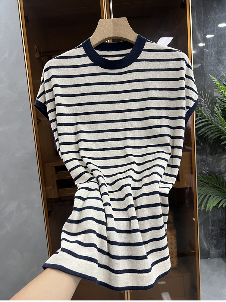 N货!通勤百搭!亚麻条纹针织圆领短袖T恤上衣女 S260304