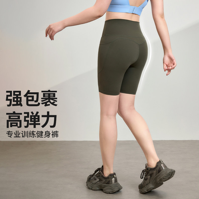 益扬大码运动短裤女速干跑步健身裤高腰收腹提臀瑜伽紧身四分裤