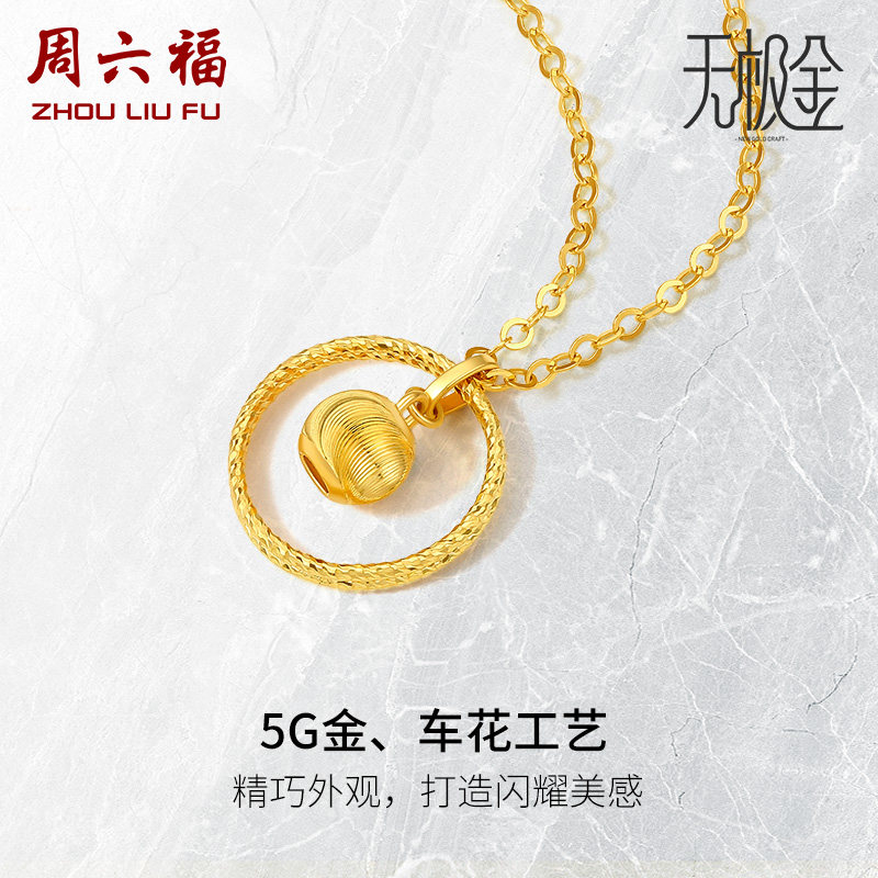天猫周六福旗舰店,周六福5g黄金项链女足计价链坠,5G金 车花工艺