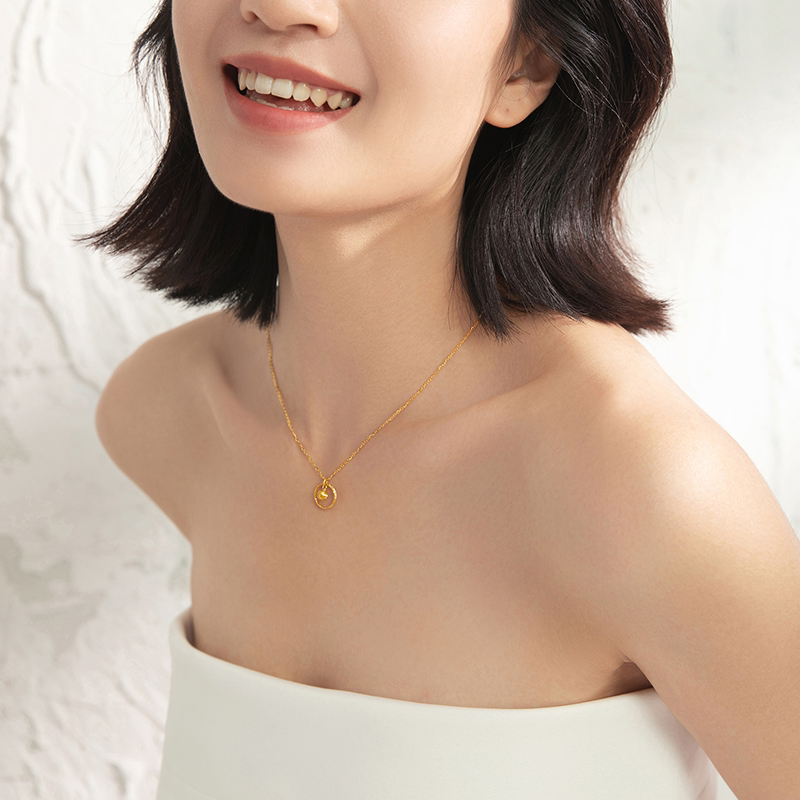 周六福5G黄金项链女款2代无极金系列计价足金ins风套链节日礼物