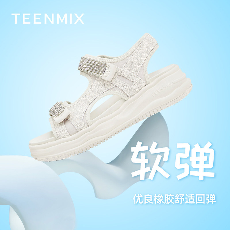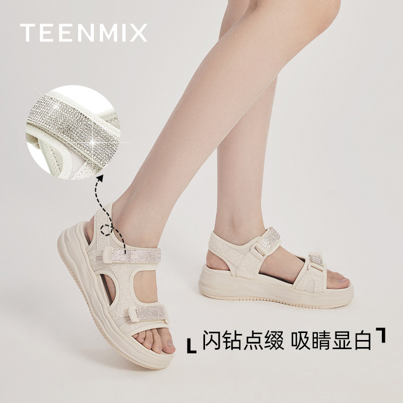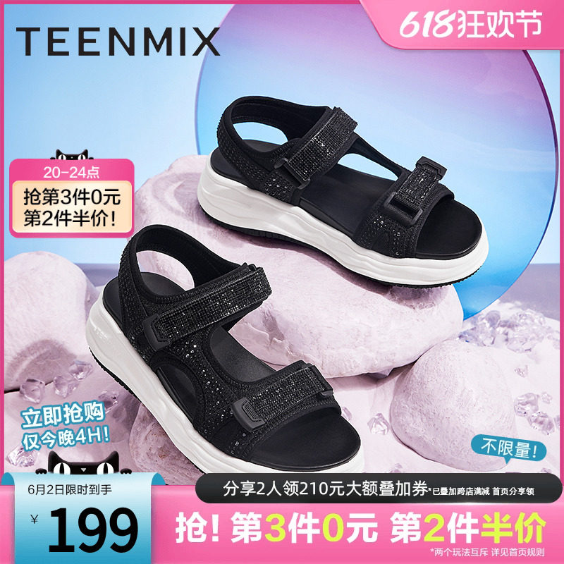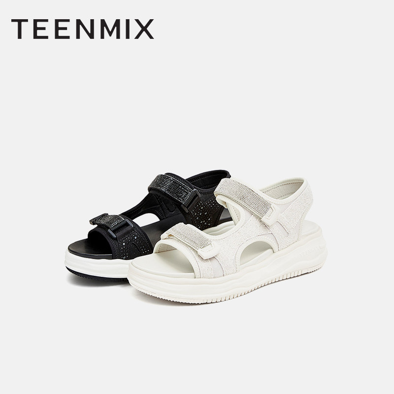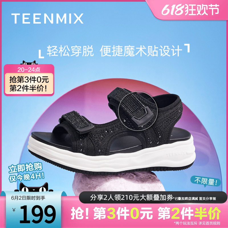天猫百丽集团官方outlets店,天美意厚底运动凉鞋女沙滩鞋魔术贴松糕商场同款CN101BL2奥莱,厚底休闲 时尚百搭
