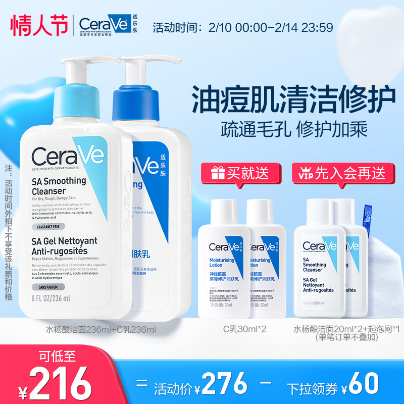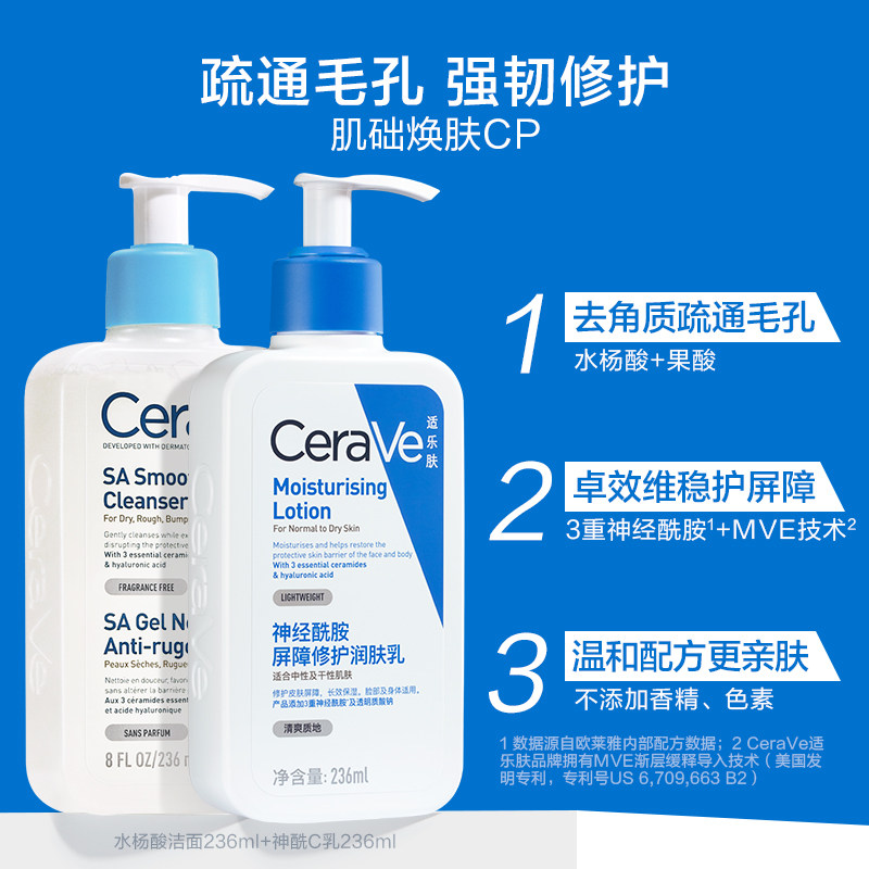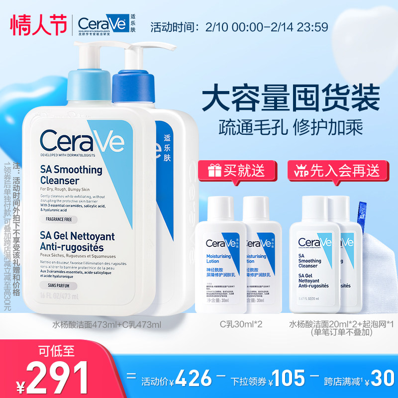 天猫CeraVe适乐肤官方旗舰店,CeraVe水杨酸净痘套装洁面乳液