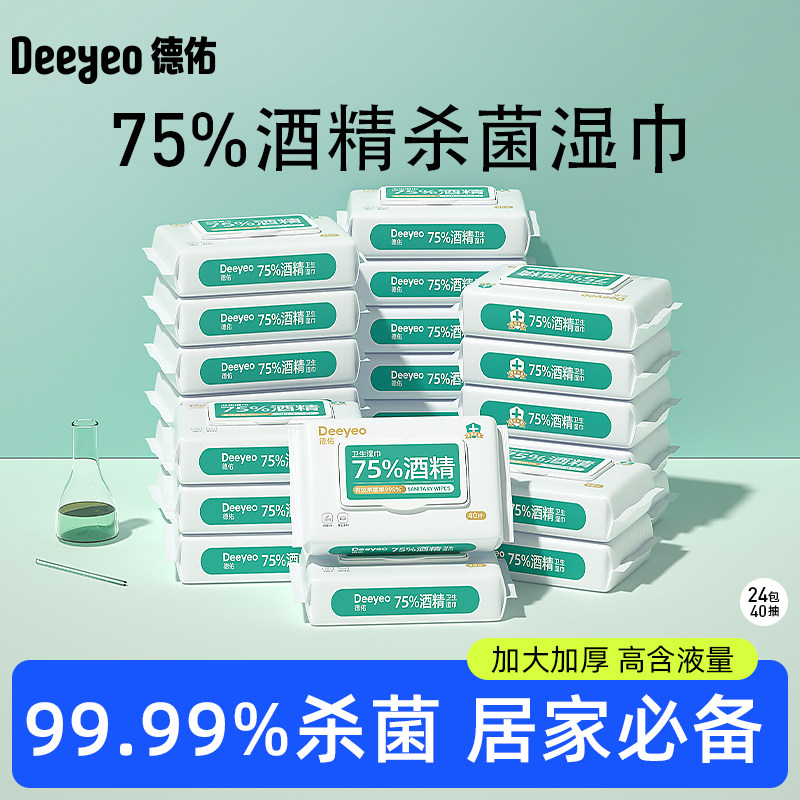 天猫德佑旗舰店,德佑75度酒精湿巾40抽20包,99.9%杀菌率 安全放心 家用办公量贩装