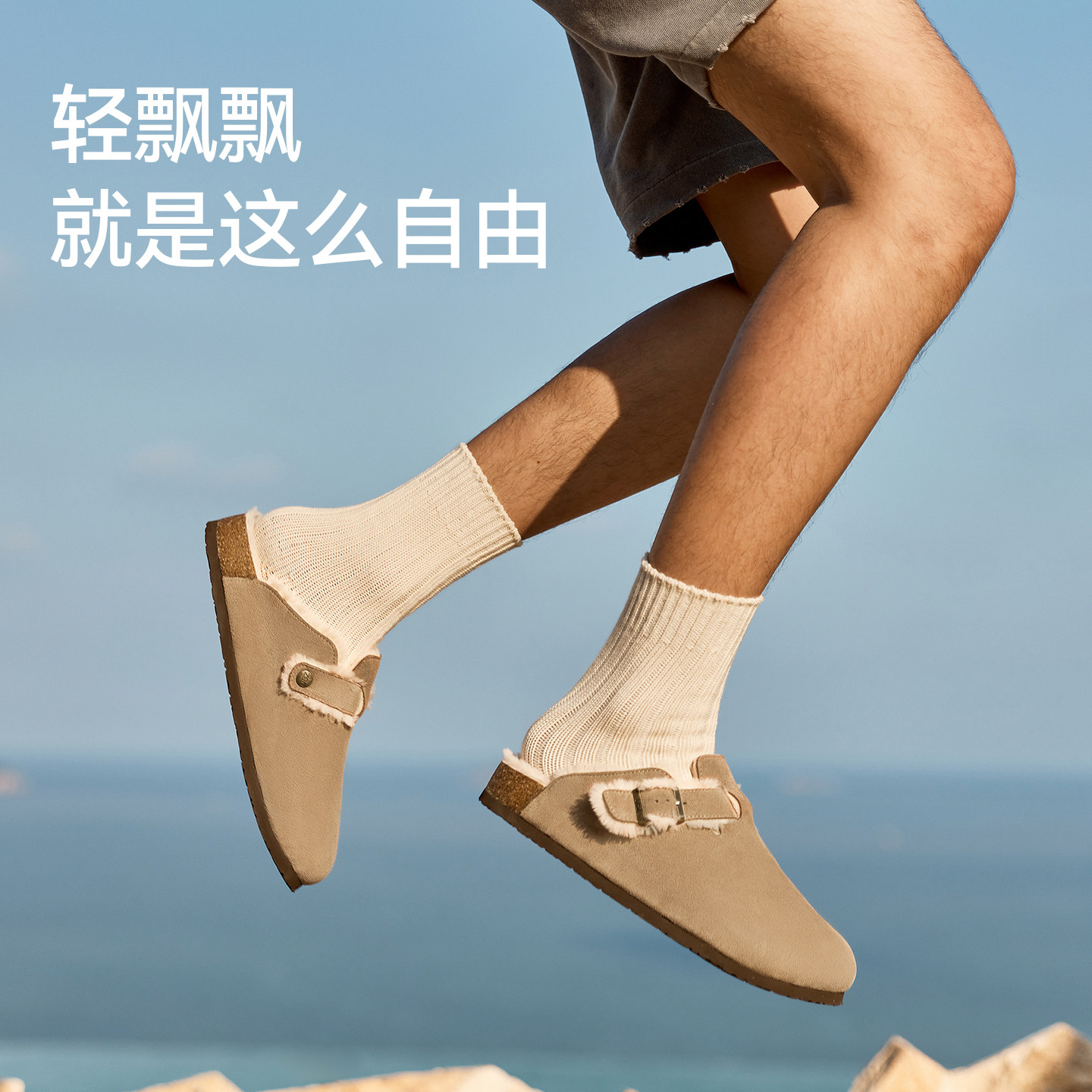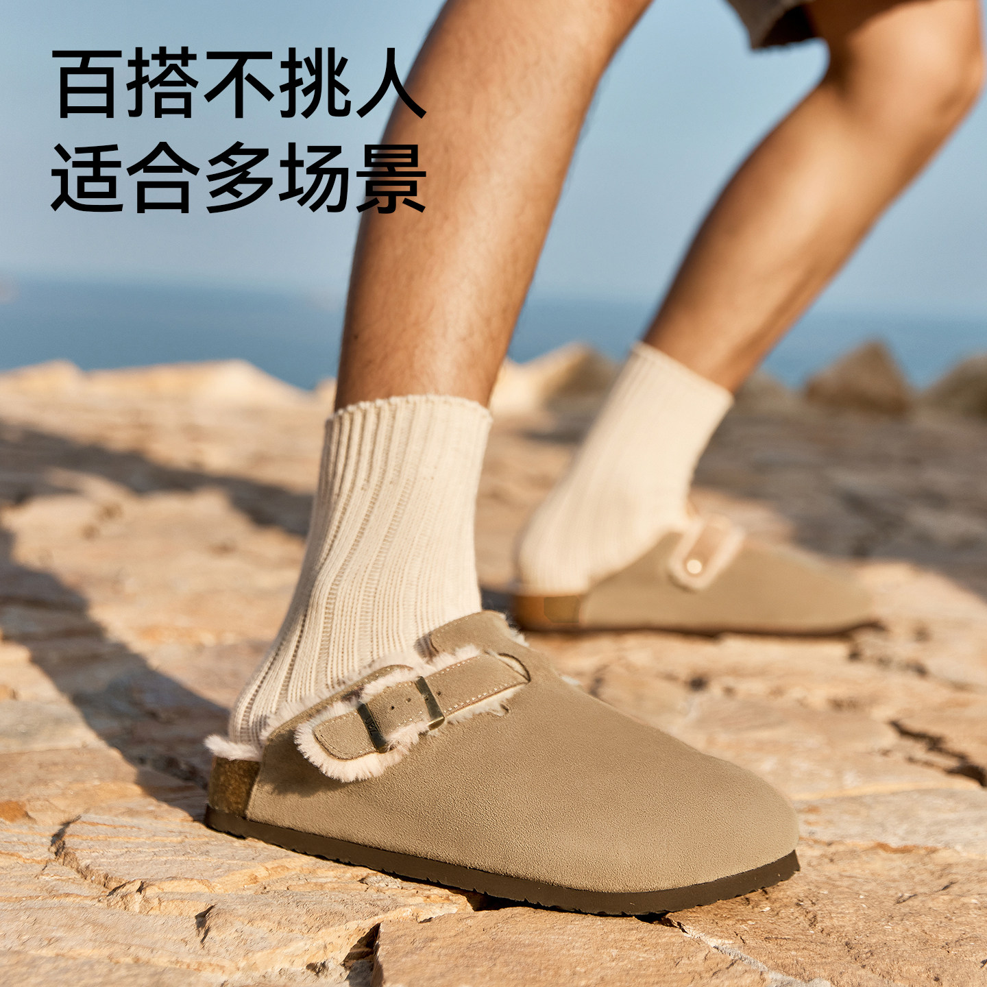 天猫ubz旗舰店,UBZ 防水加绒勃肯拖鞋男士外穿2026秋冬新款休闲百搭真皮厚底棉鞋