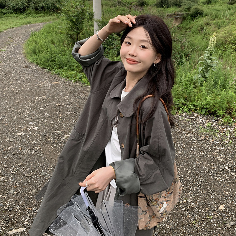 一三良品小个子 低调气质~2024早秋宽松廓形暗绿风衣长款外套女
