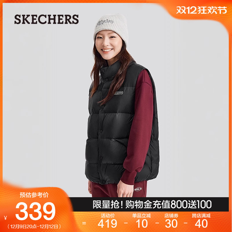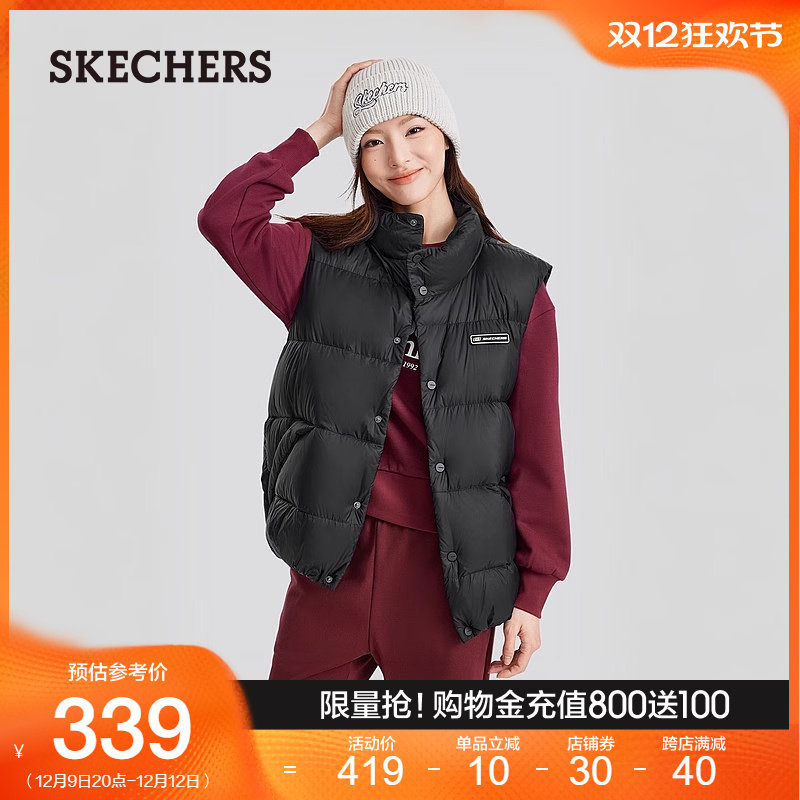 天猫skechers男鞋旗舰店,Skechers斯凯奇2024新款冬季男女同款保温蓄暖百搭叠穿羽绒背心,轻盈蓬松,70绒子鸭绒,高领设计