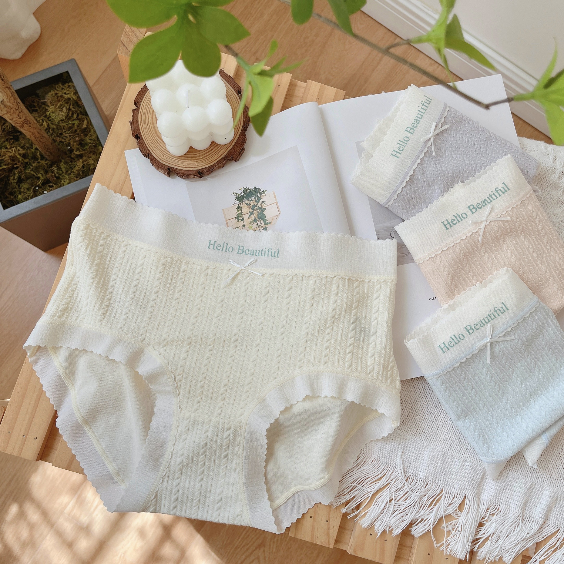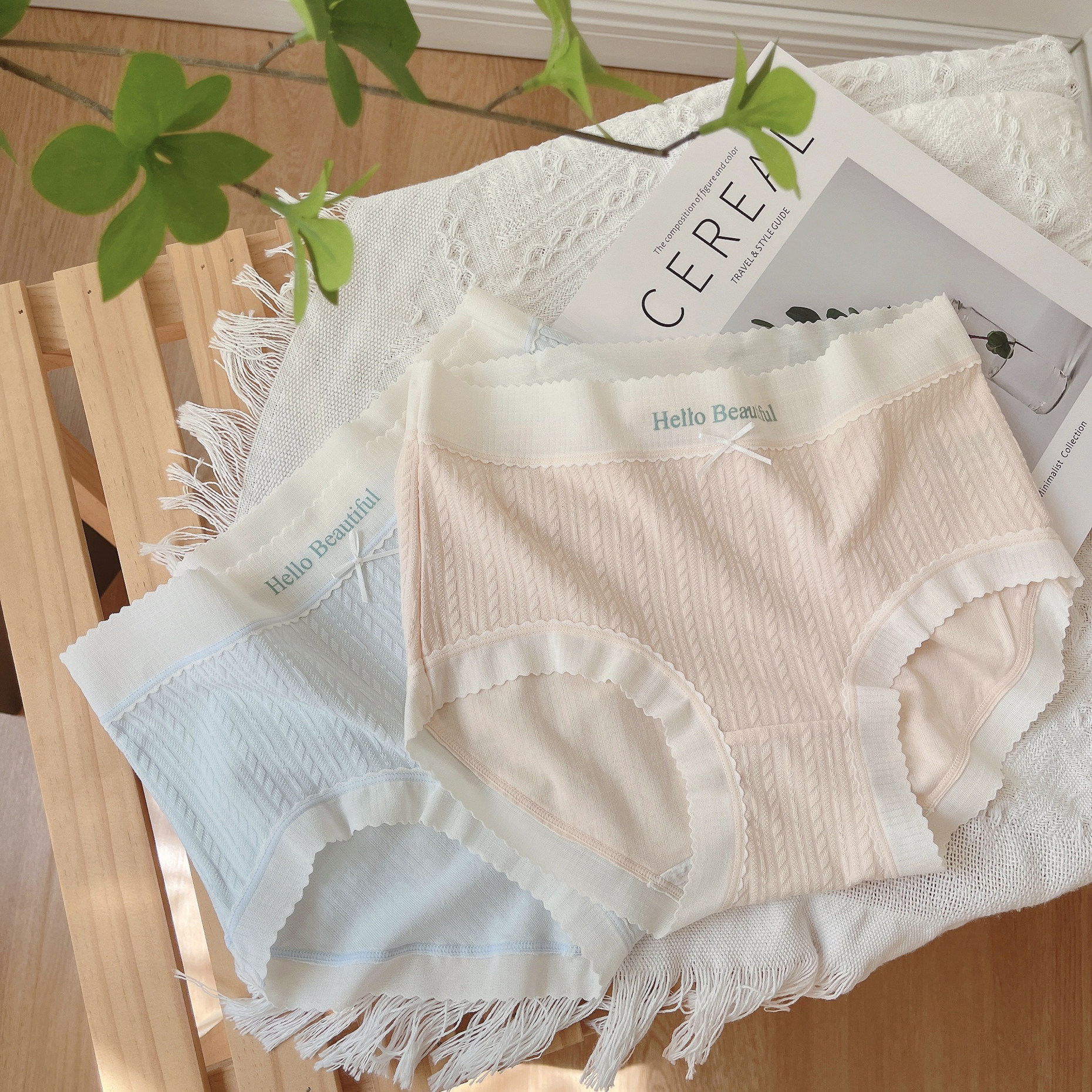 【杏仁奶酥】奶油系温柔甜美麻花内裤女蝴蝶结中腰包臀纯棉抗菌裆