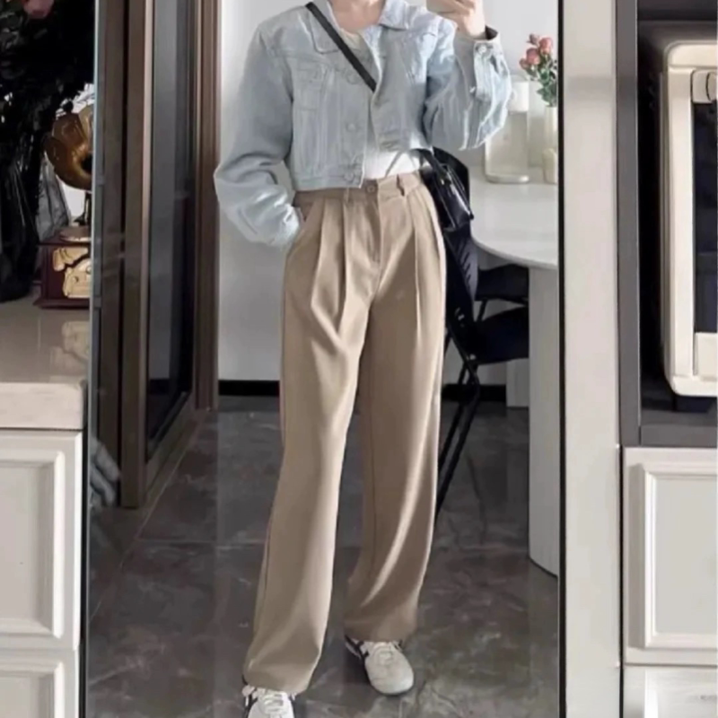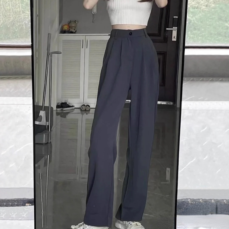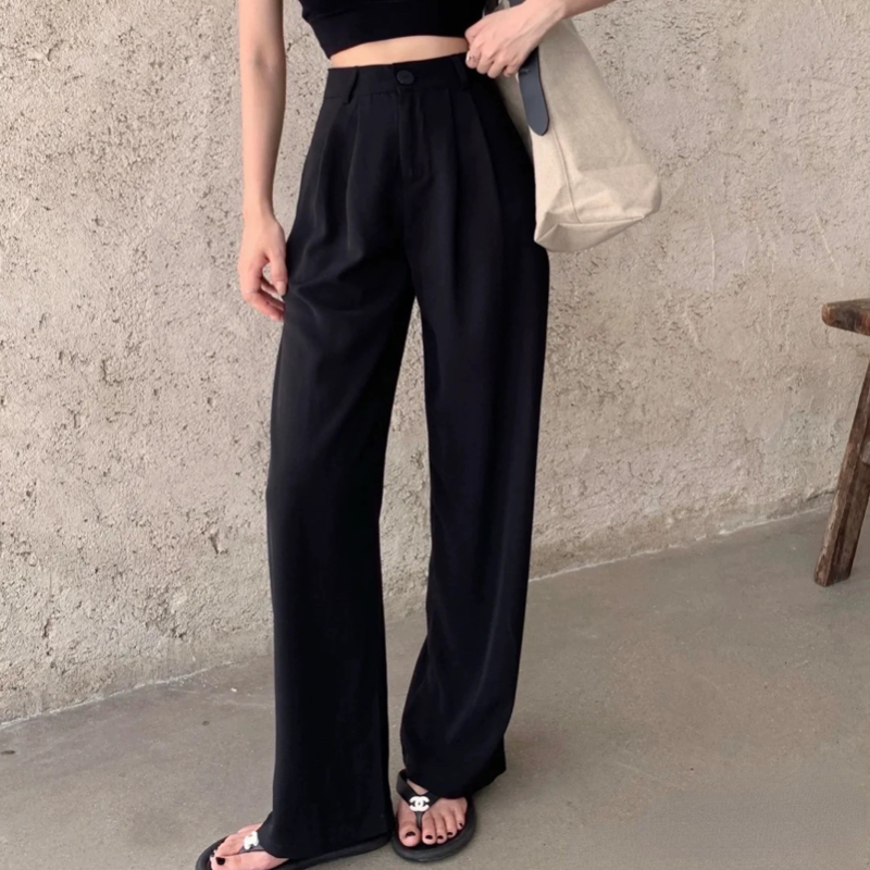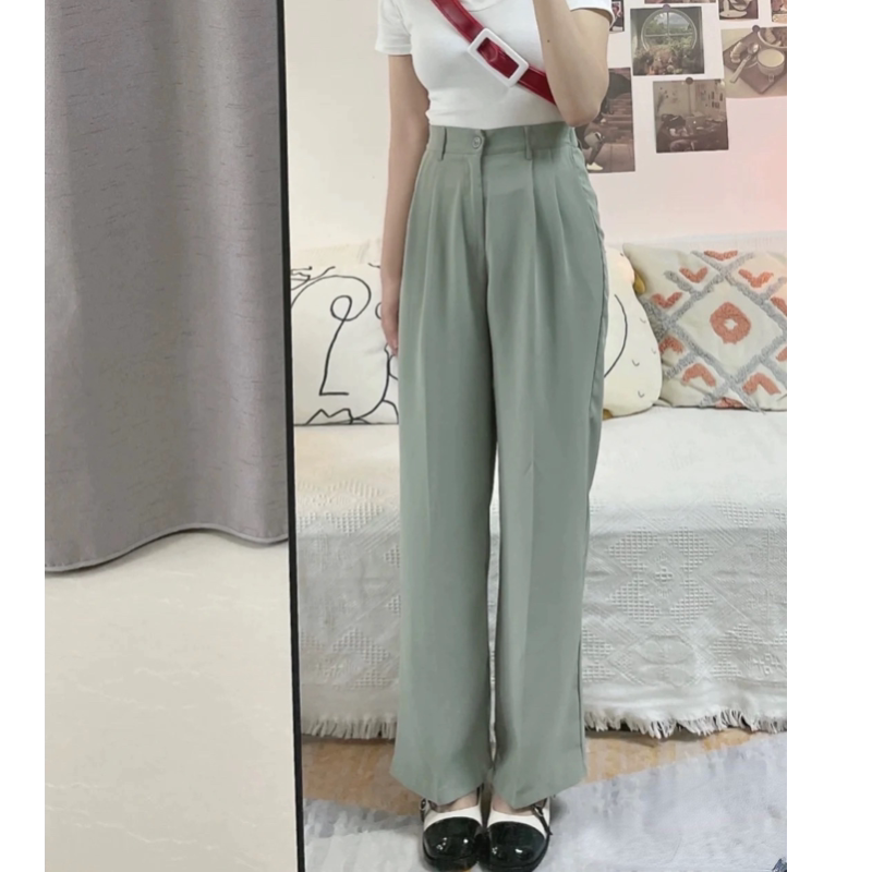 淘宝Q衣库,全场第二件显瘦垂坠感宽松直筒西裤半松紧腰长裤拖地学生西裤日系