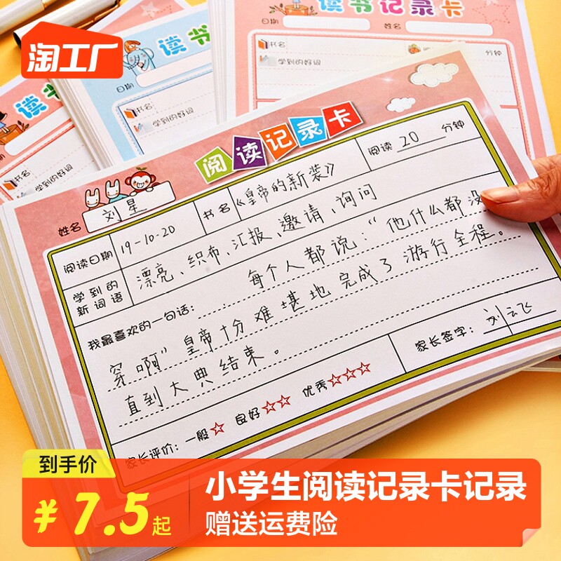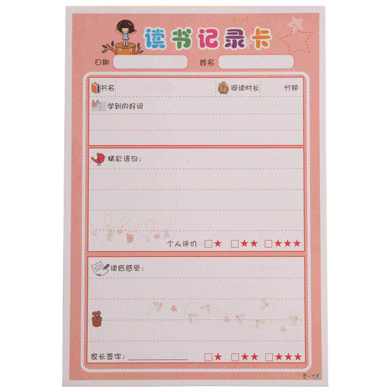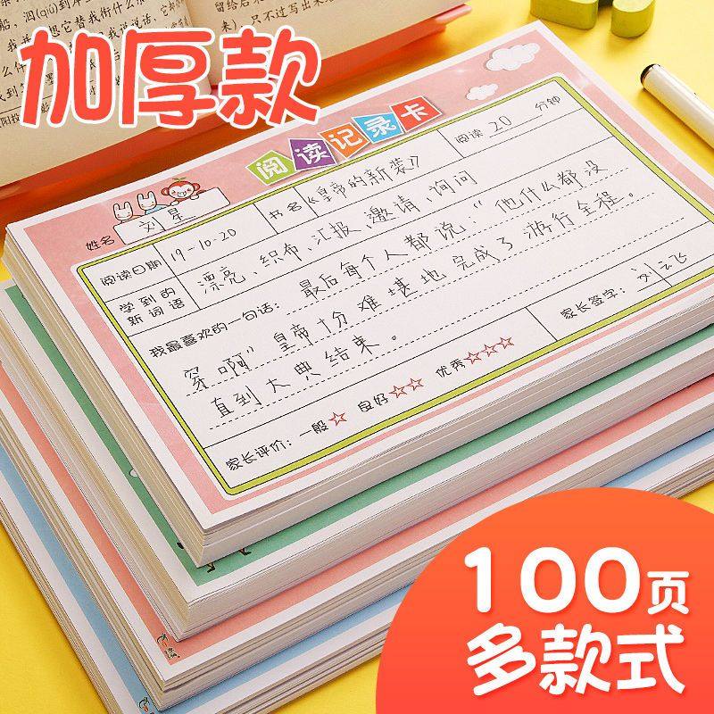 天猫天天特卖工厂店,小学生阅读记录卡读书摘记卡一年级二三年级日积月累笔记本课外好词好句摘抄登记卡记录单创意活页大学生,加厚纸张 双面可写 活页可拆卸