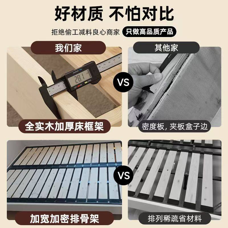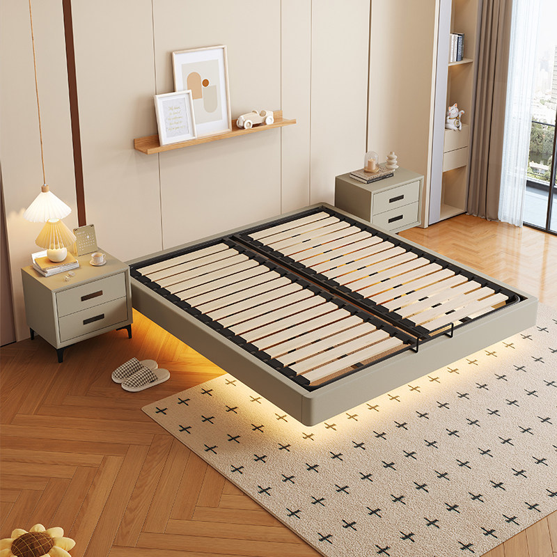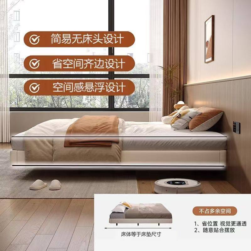 全实木悬浮床小户型无床头床齐边床钢木静音排骨架床架可定制尺寸