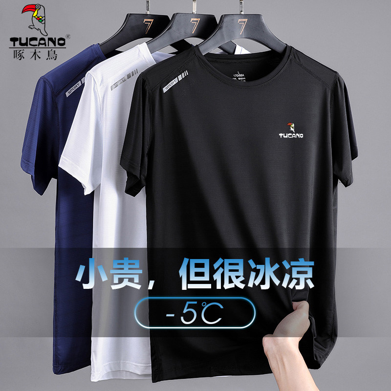 淘宝啄木鸟开心精品男装,啄木鸟冰丝t恤男士夏季宽松大码运动短袖薄款速干透气潮流上衣服