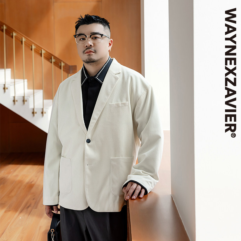 天猫韦恩泽维尔旗舰店,韦恩泽维尔宽松大码灯芯绒西服,灯芯绒面料,触感柔软,舒适保暖。